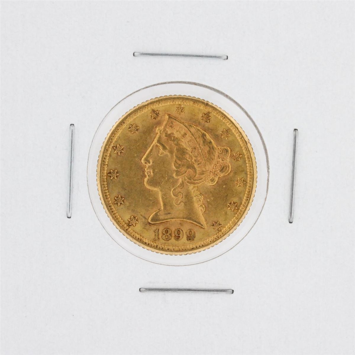 One 1899-S $5 CU Liberty Head Half Eagle Coin.