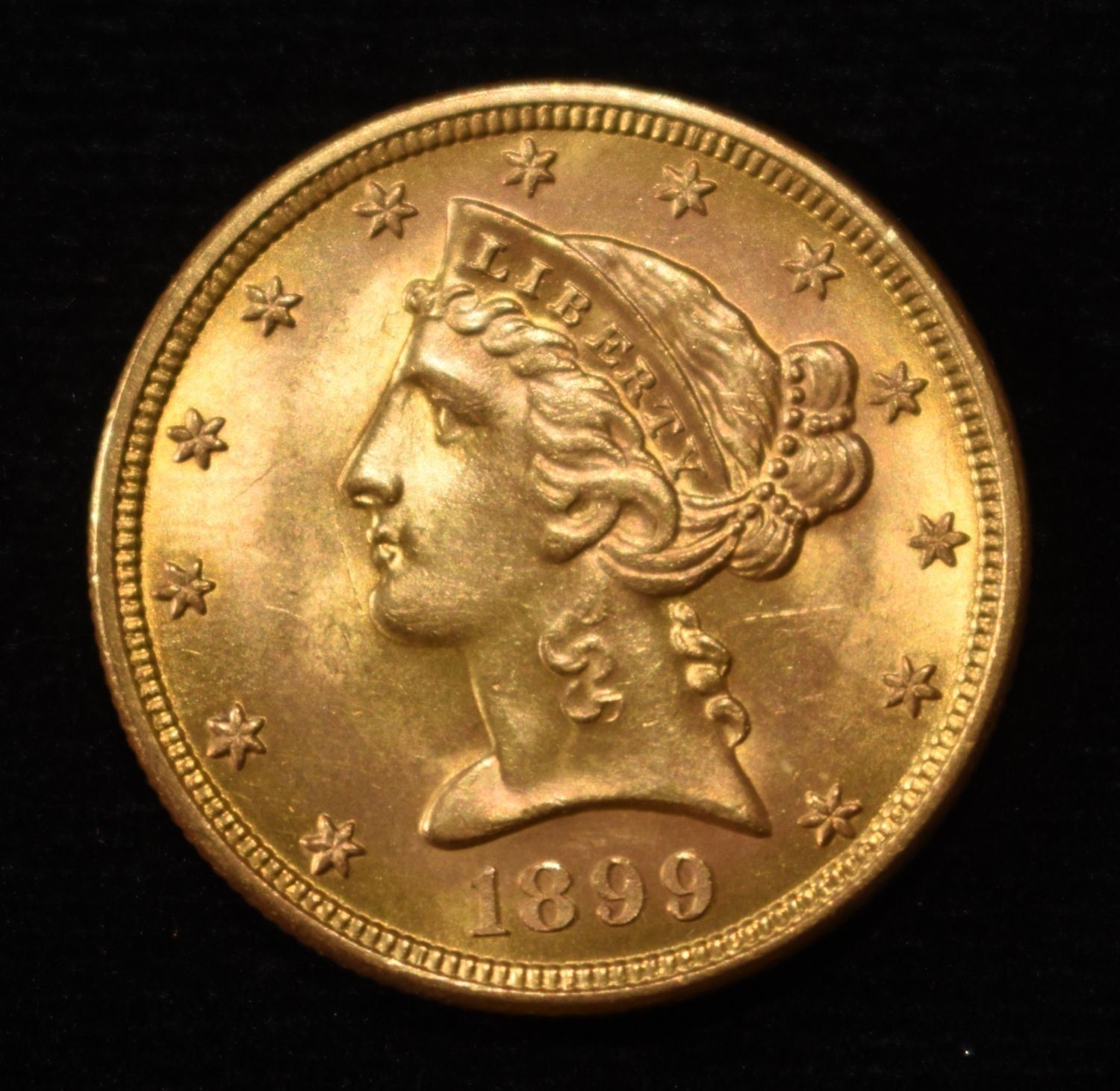 1899-S $5 LIBERTY GOLD WITH MOTTO SUPERB GEM BU
