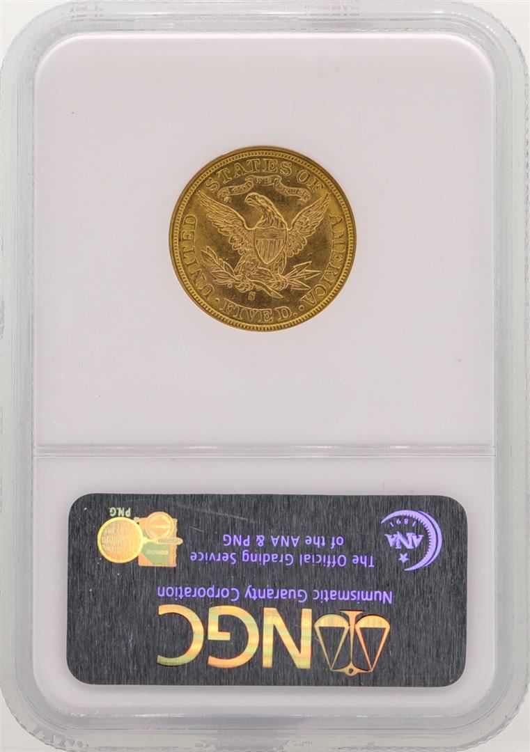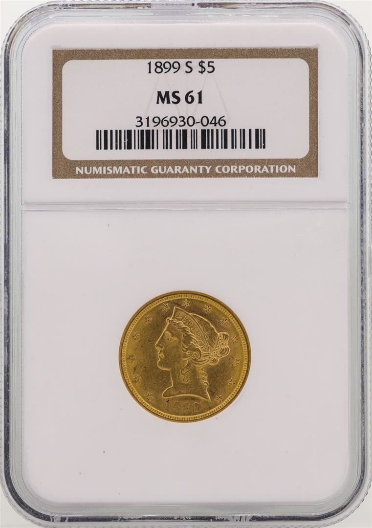 One 1899-S $5 Liberty Head Half Eagle Gold Coin NGC MS61. NGC Certified.
