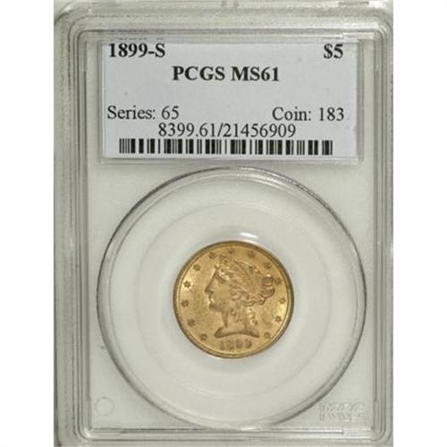 1899-S $5 MS61 PCGS. PCGS Population (85/246). NGC