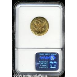 <B>1899-S<$5> MS69 NGC.</B></I> Ex: Eliasberg. Like many of the late nineteenth and early twentieth century coins from the famed Eliasberg Collection, this piece was obtained at face value by John H. Clapp directly from the San Francisco mint. It is perhaps the most pristine example of the type that this cataloger has ever seen, and is certainly the finest example of the date that we have ever seen or handled. It is the finest certified by either service (the only close competition is a PCGS MS68, with no other examples graded by either service above MS66), and is among the finest known specimens <I>for the type.</B></I> The surfaces display intense luster with a reflective quality that is highly unusual for the issue, indicating that this piece was indeed a "special" coin set aside for an important collector. The strike is impeccable, sharp enough that it compares to many proofs of the era in this respect. A long, hard look at the surfaces under magnification does reveal a couple (literally, only a couple) of tiny, nearly insignificant abrasions--but then MS70 is supposed to be only a theoretical grade of perfection, right? One tiny toning spot just in front of Liberty's upper lip is mentioned for accuracy, and provides an easy pedigree marker for this important numismatic treasure. A stunning coin that is equal in importance alongside the other denominations of this year and mint also offered in this sale, and is certainly the most important 1899-S half eagle that we have ever had the pleasure to offer. Population: 1 in 69, 0 finer (4/04). <BR><BR><B>Important notice:</B> Heritage usually auctions material at the rate of 200-250 lots per hour. On some occasions eBay Live bid software or the Internet may not be able to keep up with the pace of the auction. We recommend placing a realistic absentee bid now as insurance to avoid disappointment. Occasionally the auctioneer may eliminate or reject an eBay Live bid, and the auctioneer may also reopen a lot after the close of the eBay live bidding (usually because we missed an audience bid), and may reject your bid even if it shows you as the winning bidder. By bidding via eBay Live, you agree that Heritage may award the lot to another bidder at its sole discretion under the circumstances described above or any other reasonable circumstances. Since eBay bids are not shown to us until we open the lot on the floor, we treat those bids just like floor bids. In most cases the floor responds before the eBay bid is presented to us, due to Internet lag time, so for consistency we have made it a policy that floor bids are always considered first over tie eBay live bids. Also please note that all Heritage lots purchased through eBay Live carry a 20% Buyer's Premium. Please make sure you read the Terms and Conditions before you bid.