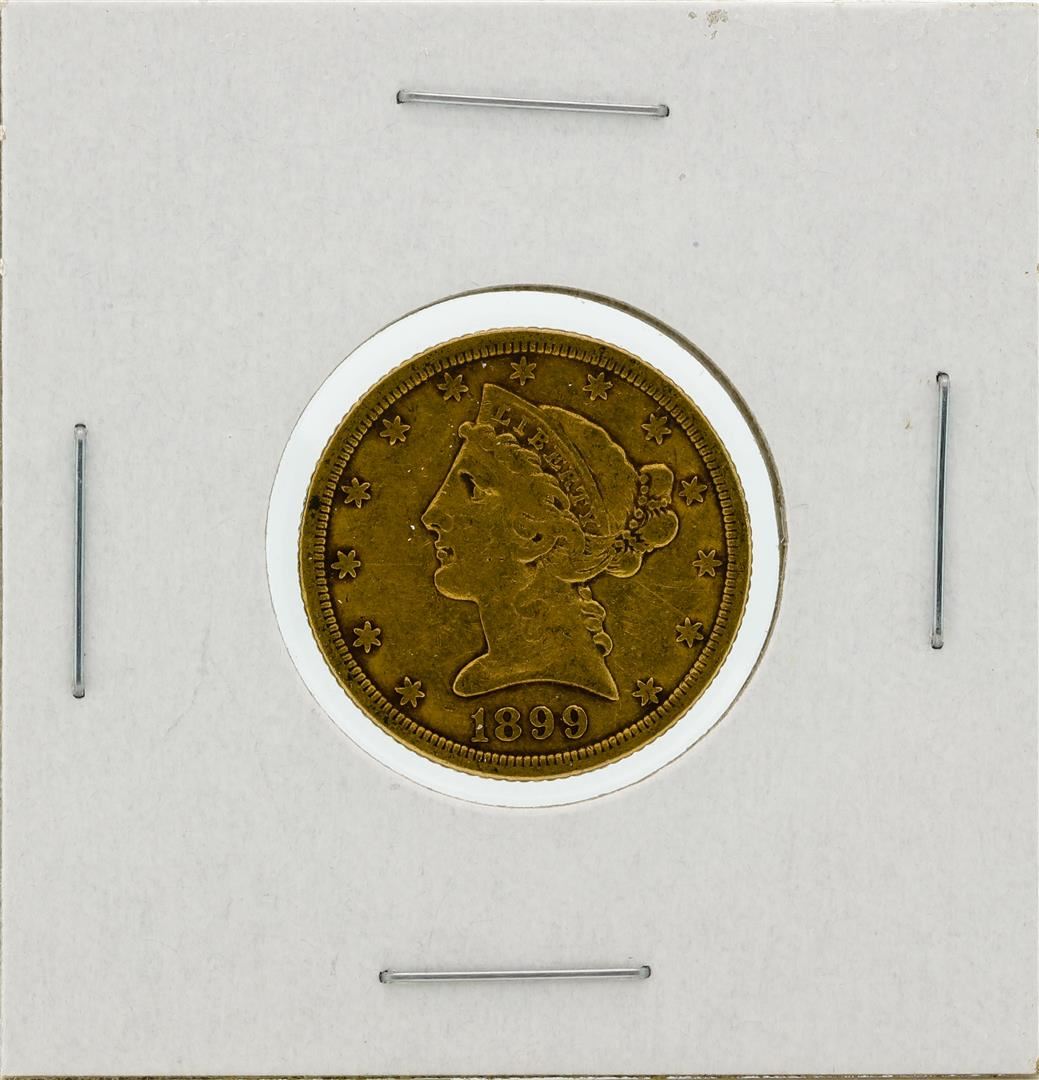 One 1899-S $5 VF Liberty Head Half Eagle Gold Coin.