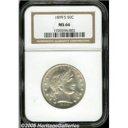 <B>1899-S 50C MS66 NGC.</B></I> The '99-S Half Dollar is a particularly difficult issue in better Mint State grades and the number of Gem survivors is extremely limited. This beautifully frosted example is boldly defined overall and is fully brilliant overall. The surfaces are smooth as expected of the assigned grade. Population: 7 in 66, 3 finer (2/05).