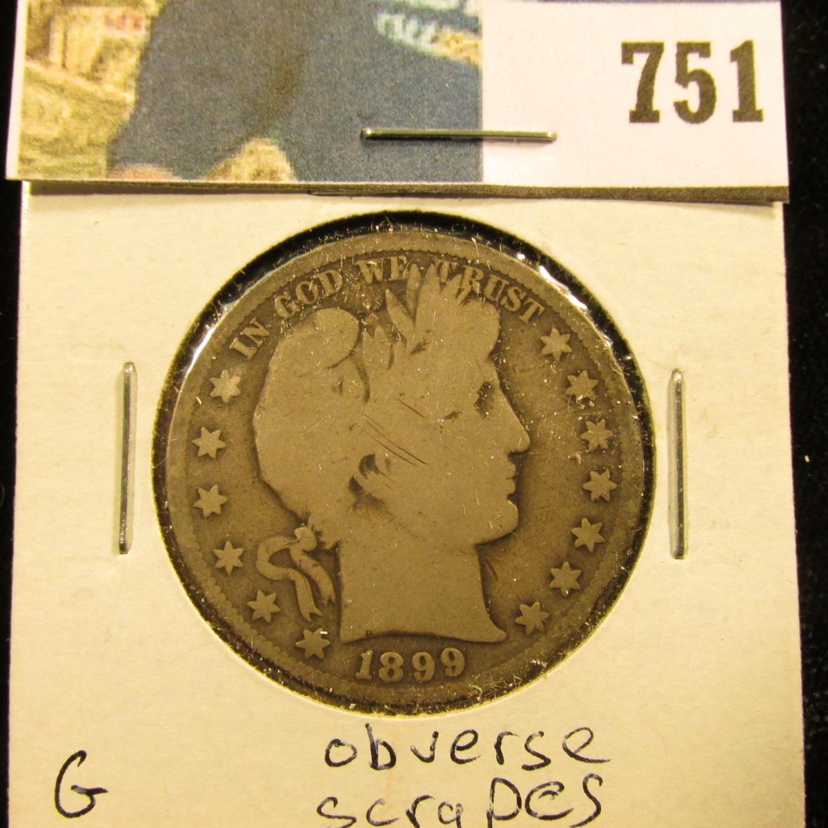 1899 S Barber Half Dollar, G. Three small obverse scratches.