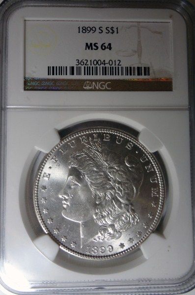 1899-S MORGAN DOLLAR NGC MS64, IT WAS GRADED 65 BY NGC AND REDUCED TO 64