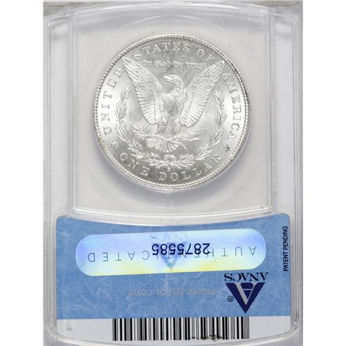 <B>1899-S<img border='0' src='http://www.heritagecoins.com/images/star.gif' width=10 height=10>$1> MS64 ANACS.</B></I> VAM-7. A Top 100 Variety. The date is lightly but widely repunched northeast. This lustrous and nearly brilliant near-Gem is nicely struck and suitably preserved. A speck or two of debris is noted near the second S in STATES.