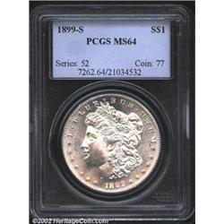 1899-S S$1 MS64 PCGS. Brilliant and highly lustrous with a sharp strike. The surfaces are extremely pleasing. A seemingly conservatively graded example. Important notice: We expect to be auctioning lots at the rate of 200-250 per hour. Sometimes eBay Premier live bid software cannot keep up with that pace, so we strongly recommend that you place a realistic proxy bid now as insurance to avoid disappointment. Also please note that all Heritage/CAA lots purchased through eBay Premier carry a 20% Buyer's Premium.