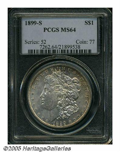<B>1899-S<S$1> MS64 PCGS.</B></I> Lustrous and attractive. Delicately toned in pastel shades of gold, pink, and lilac.