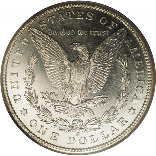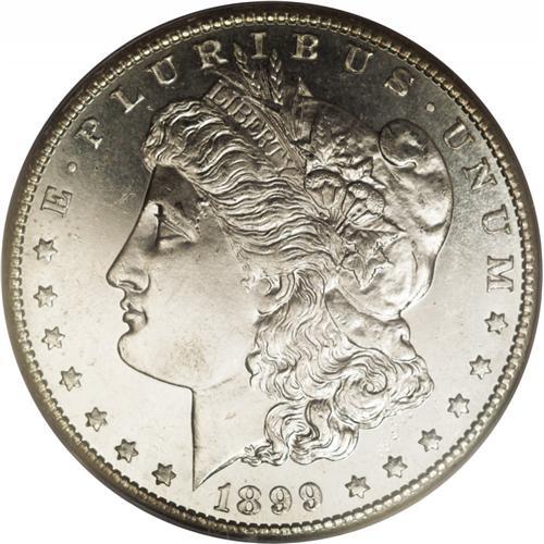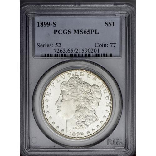 <B>1899-S<img border='0' src='http://www.heritagecoins.com/images/star.gif' width=10 height=10>$1> MS65 Prooflike PCGS.</B></I> Untoned with moderate depth of reflectivity and only a few light, well scattered surface marks. A scarce late-date San Francisco dollar with prooflike qualities, especially in such an outstanding grade. Population: 31 in 65 Prooflike, 4 finer (3/06). <BR><BR><B>Important notice:</B> Heritage usually auctions material at the rate of 200-250 lots per hour. On some occasions eBay Live bid software or the Internet may not be able to keep up with the pace of the auction. We recommend placing a realistic absentee bid now as insurance to avoid disappointment. Occasionally the auctioneer may eliminate or reject an eBay Live bid, and the auctioneer may also reopen a lot after the close of the eBay live bidding (usually because we missed an audience bid), and may reject your bid even if it shows you as the winning bidder. By bidding via eBay Live, you agree that Heritage may award the lot to another bidder at its sole discretion under the circumstances described above or any other reasonable circumstances. Since eBay bids are not shown to us until we open the lot on the floor, we treat those bids just like floor bids. In most cases the floor responds before the eBay bid is presented to us, due to Internet lag time, so for consistency we have made it a policy that floor bids are always considered first over tie eBay live bids. Also please note that all Heritage lots purchased through eBay Live carry a 20% Buyer's Premium. Please make sure you read the Terms and Conditions before you bid. This lot is being auctioned in conjunction with a live floor auction by Heritage Galleries & Auctioneers. All final auction and invoice information will be supplied by Heritage Galleries & Auctioneers, and all other information should be considered preliminary. Lot:3739 <BR><BR><B>Winning Notification and Billing:</B> After the FINAL session in this auction is complete, Heritage will send e-mail and snail mail invoices. This process normally takes several days. All final auction and invoice information will be supplied by Heritage Galleries & Auctioneers, and all other information should be considered preliminary. <BR><BR>This auction will be conducted on a live auction floor and over the Internet through eBay Live. If you choose to place an absentee bid, please take a moment to <font color='#0000ff'><u><a href='http://pages.ebay.com/liveauctions/help/before/laabsentee.html'>learn how eBay Live absentee bidding works</a></u></font><font color='#000000'>