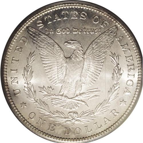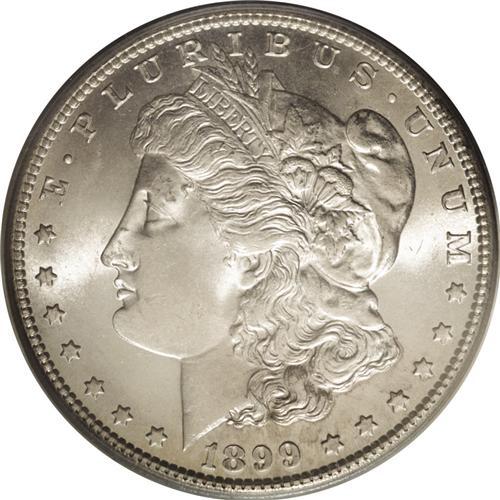 <B>1899-S<img border='0' src='http://www.heritagecoins.com/images/star.gif' width=10 height=10>$1> MS66 PCGS.</B></I> Ex: Jack Lee III. Light tan shades endow this lustrous Premium Gem, and a blush of steel-gray toning is noted on the lower left reverse. Sharply struck overall, with only a strand or two in the hair above the ear not absolutely defined. An attractively preserved example of this better date Morgan Dollar. Population: 84 in 66, 8 finer (7/06).