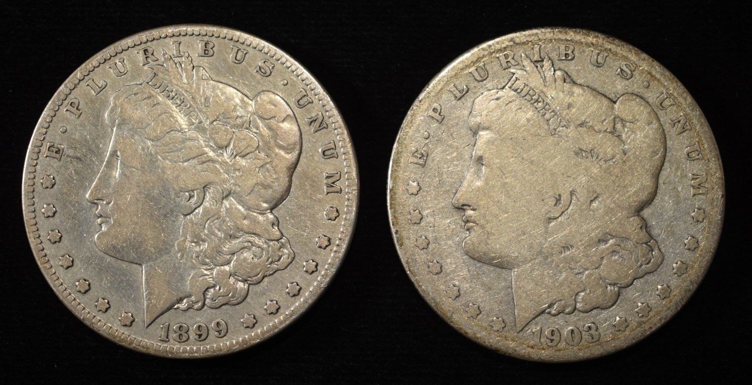 1899-S VF SCRATCH, & 1903-S GOOD MORGAN DOLLARS