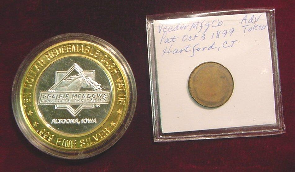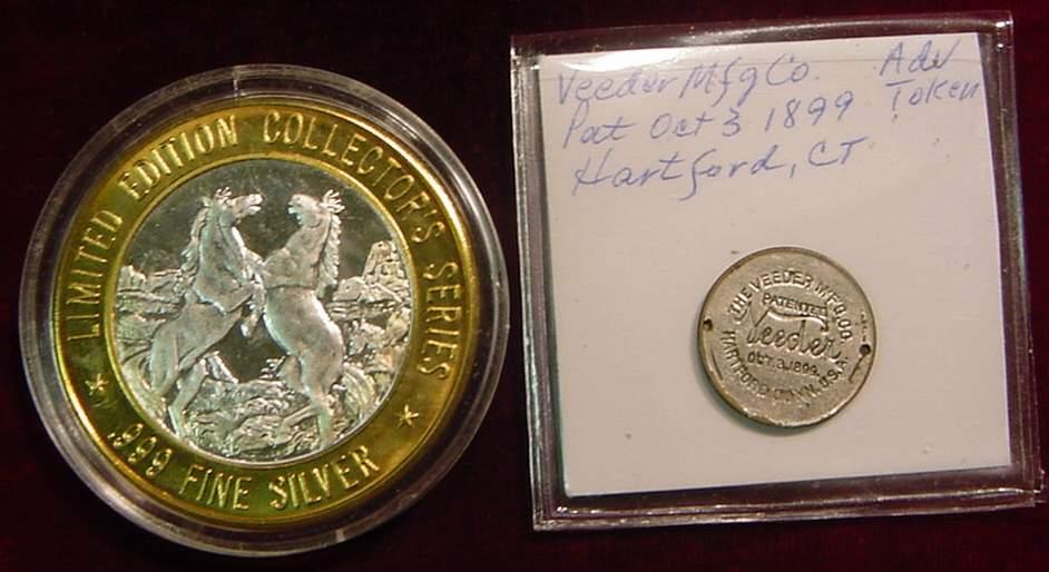 1899 Veeder Mfg. Advertising Token; & .999 Fine Silver Wild Stallions $10 Prairie Meadows" Altoona Ia. Bi-metal Medal.