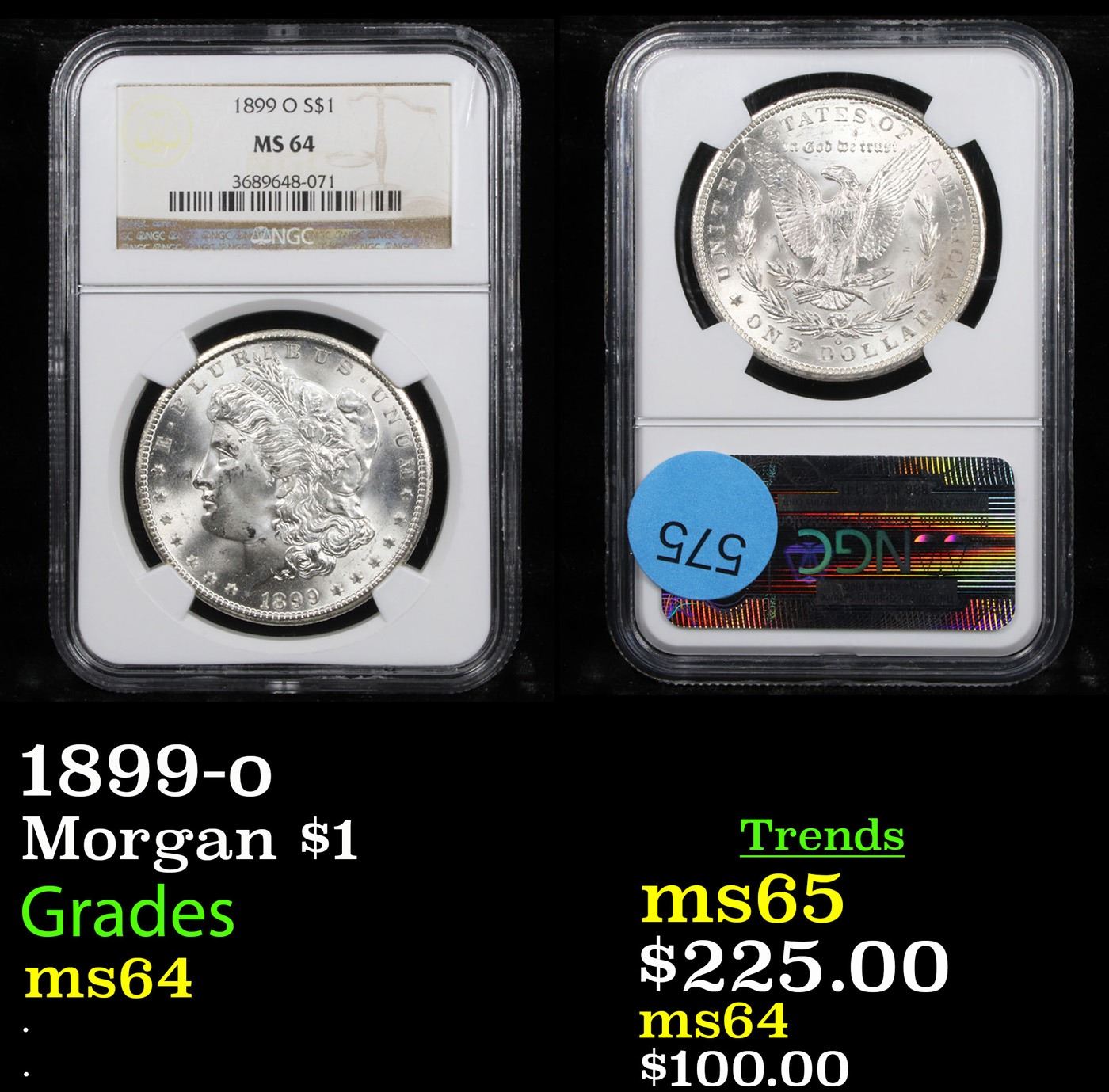 1899-o Morgan Dollar $1 Graded ms64 By NGC. 0