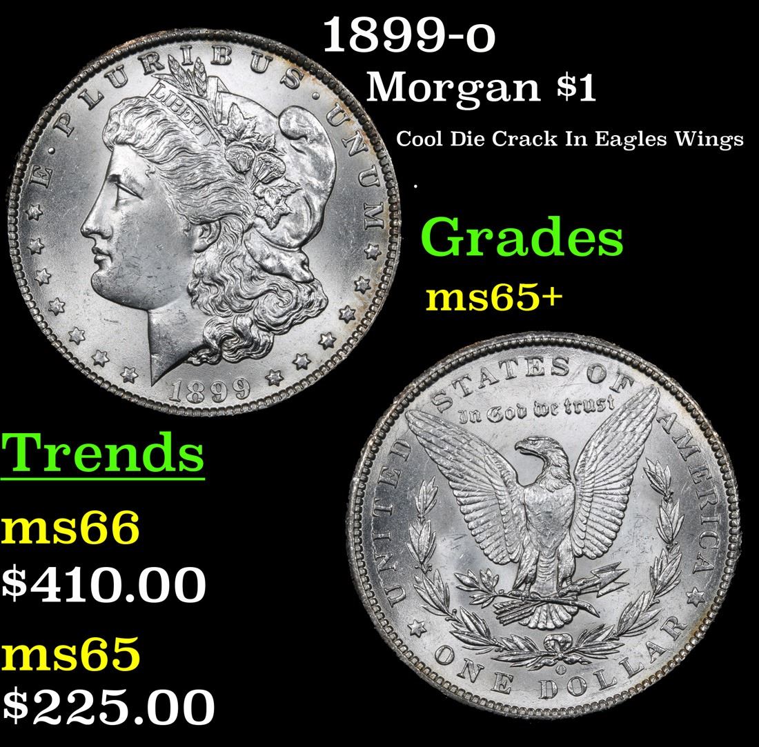 1899-o Cool Die Crack In Eagles Wings . Morgan Dollar $1 Grades GEM+ Unc.