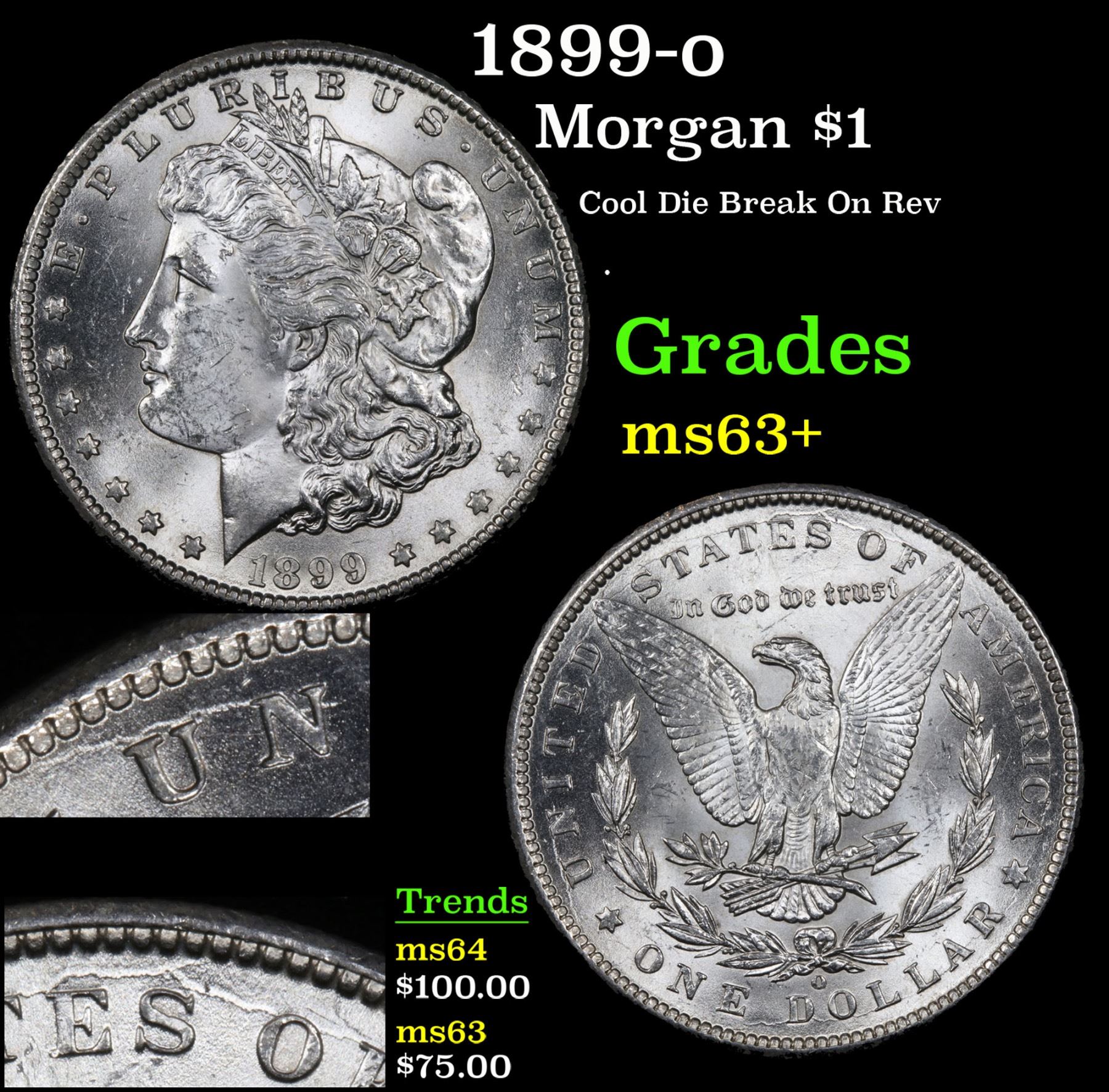 1899-o Cool Die Break On Rev . Morgan Dollar $1 Grades Select+ Unc.