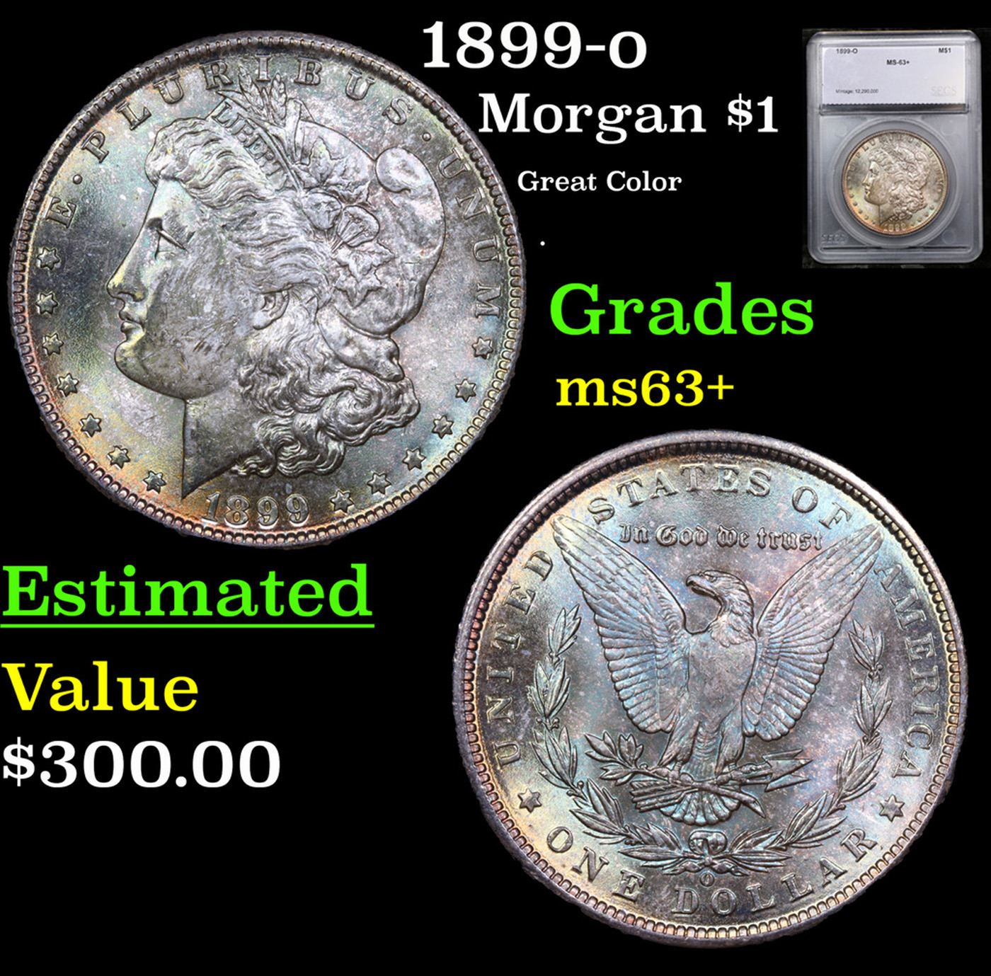 1899-o Colorully Toned Morgan Dollar $1 Graded ms63+ By SEGS.