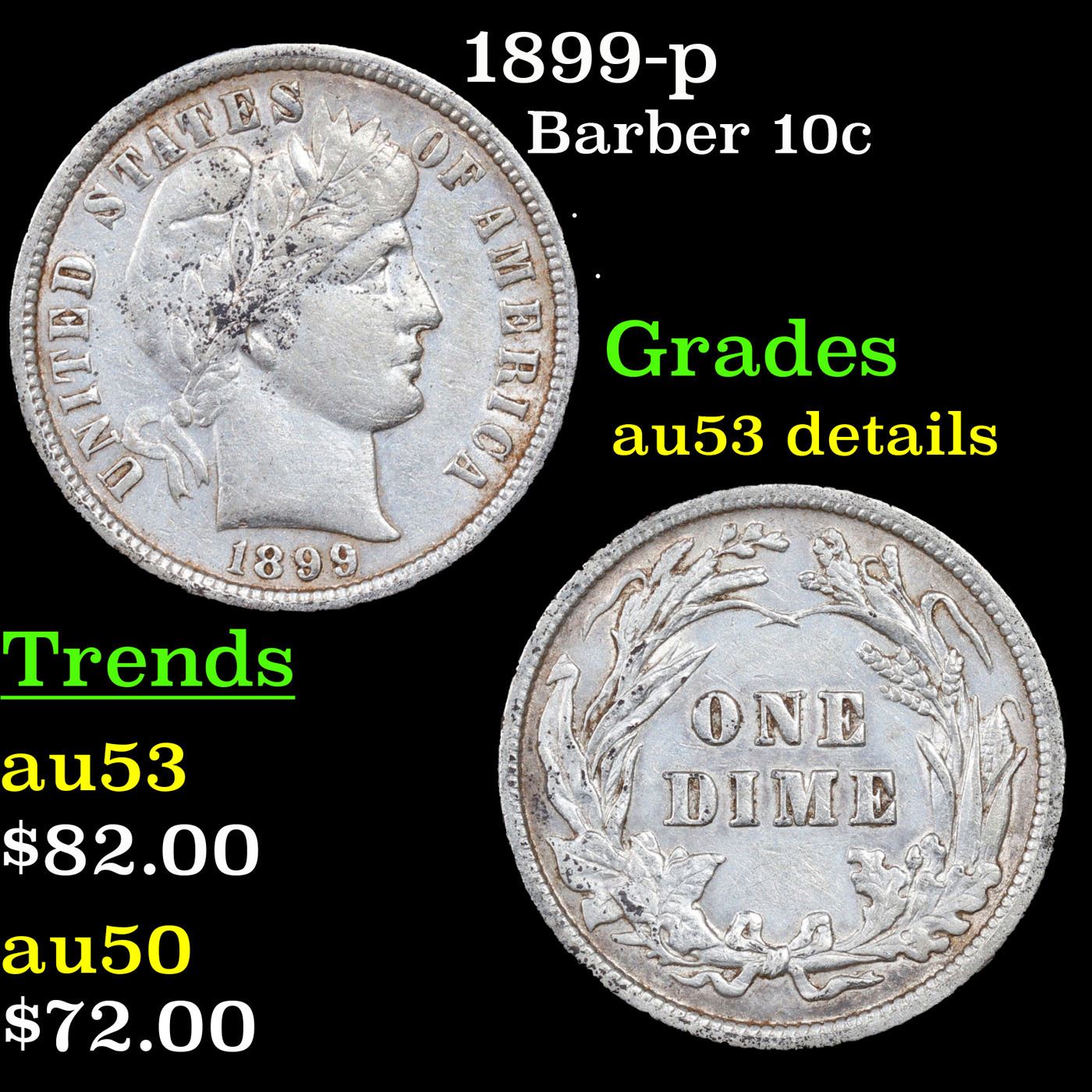 1899-p Barber Dime 10c Grades au details.