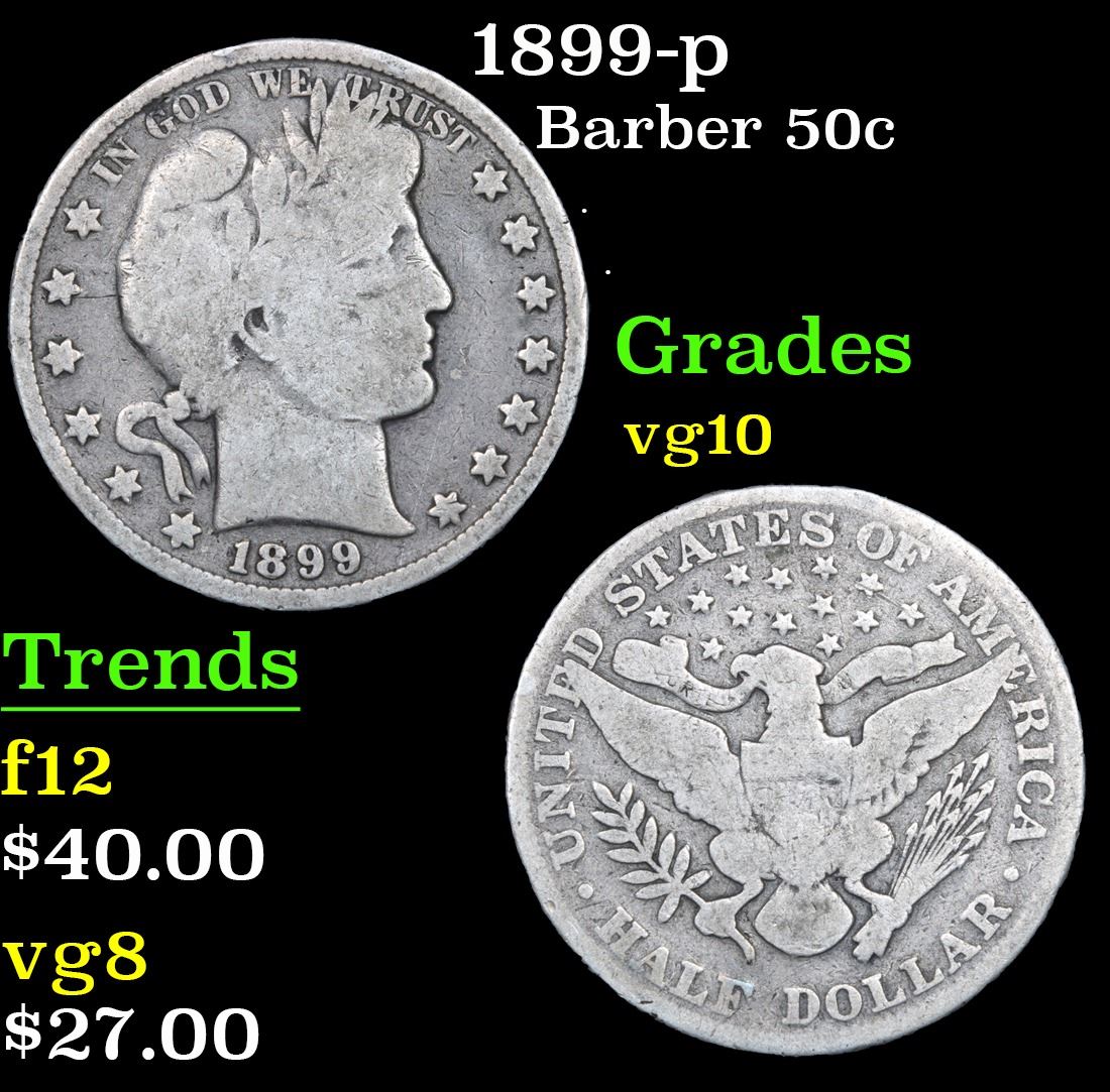 1899-p . . Barber Half Dollars 50c Grades vg+.