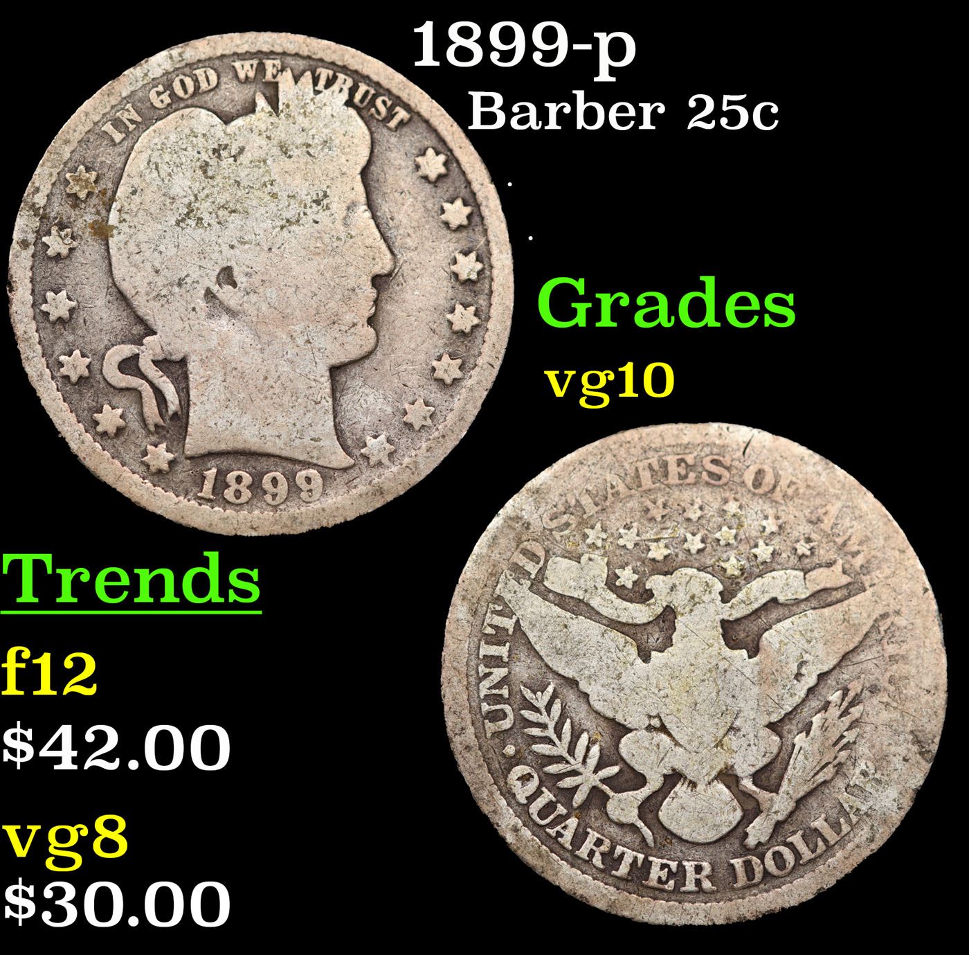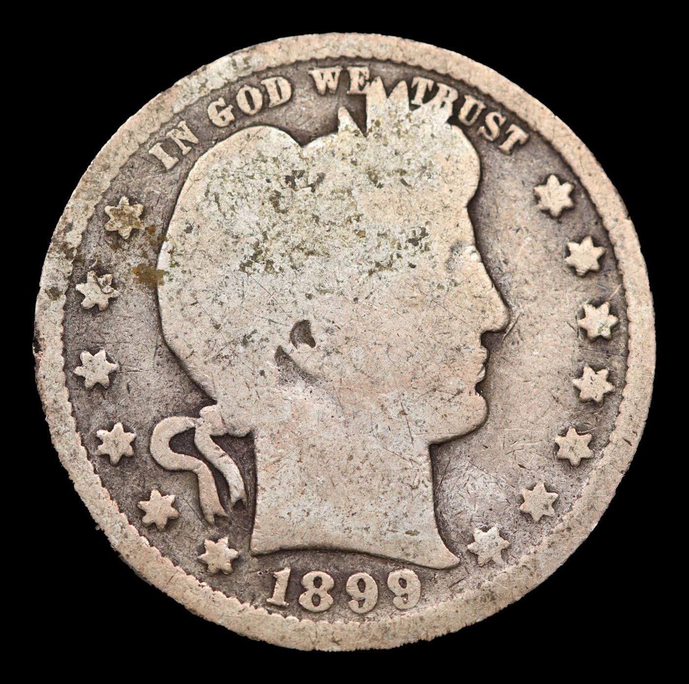 1899-p Barber Quarter 25c Grades vg+. PCGS estimates that of the original 12 Million minted only 15,000 survive