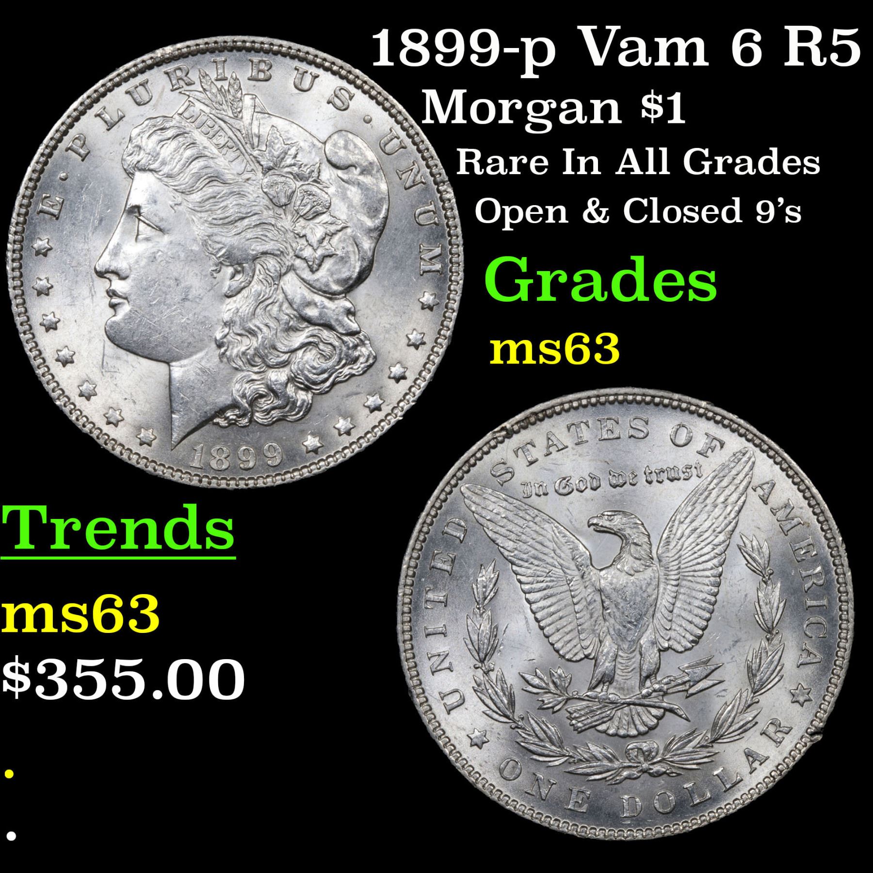 1899-p Vam 6 R5 Morgan Dollar $1 Grades Select Unc.