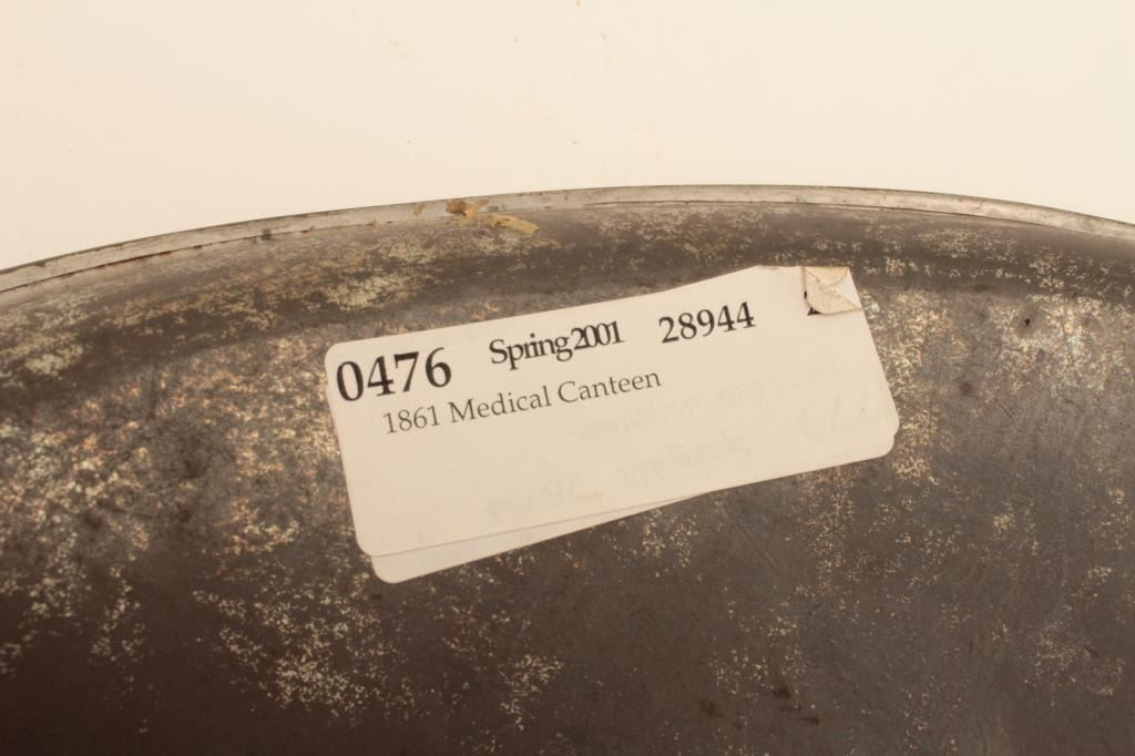 Civil War era curved tin medical canteen, approximately 9” x 12”; overall good condition. Est.: $75-150