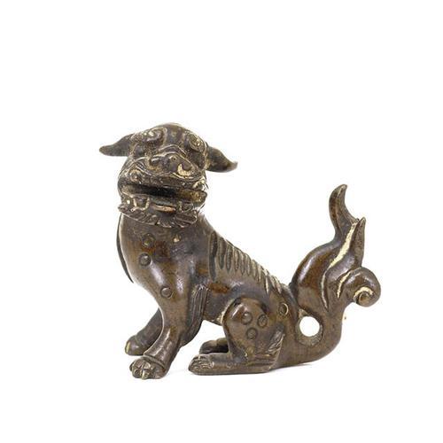<tr><td>Title:18C Chinese Bronze Seated Foo Fu Dog Lion </td></tr>