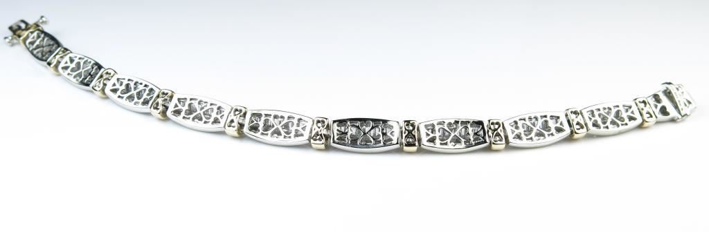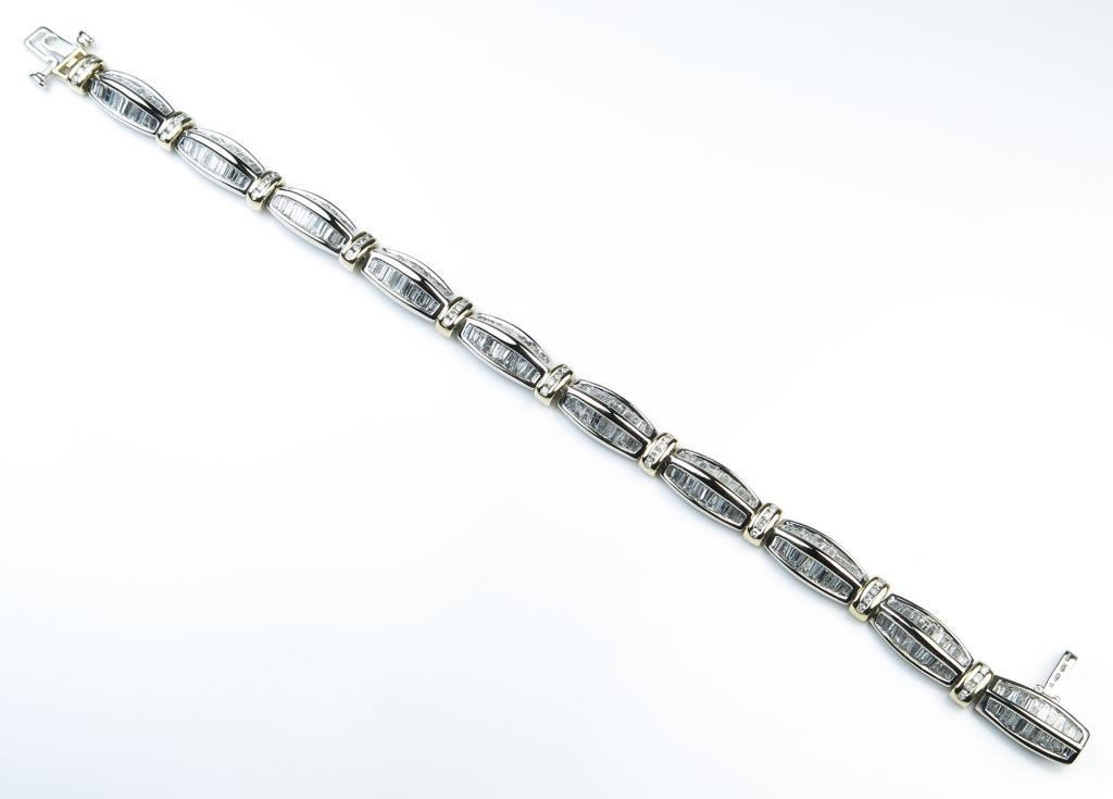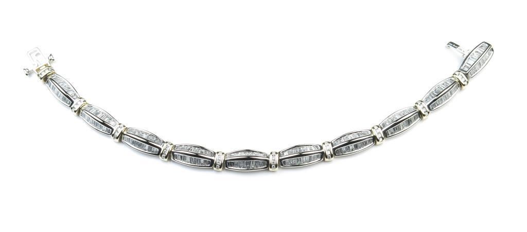 Stunning Pure Luxury Diamond Bracelet featuring approx. 8.00-9.00 carats with 240 baguette and 40 round cut Diamonds with F-G-H colors and VS/SI clarity perfectly channel set in high quality 14 karat two-tone gold setting with beautiful reverse design showing fine detailing and superb craftsmanship. Retail $15,000-$20,000 Estimates $7,000-$9,000