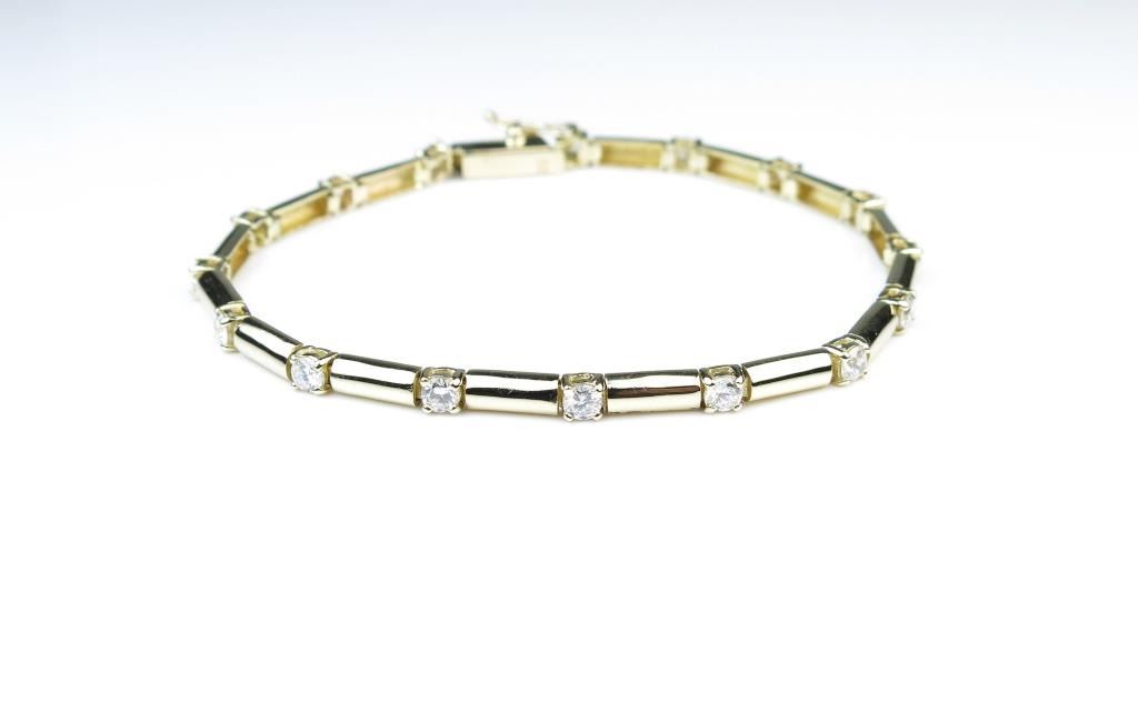 Contemporary style 14 karat yellow Gold and CZ bracelet with 8.00 grams of 14 karat gold. Estimates $600-$900
