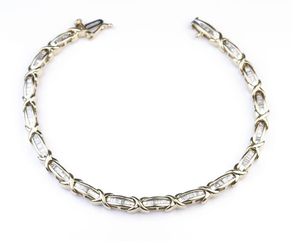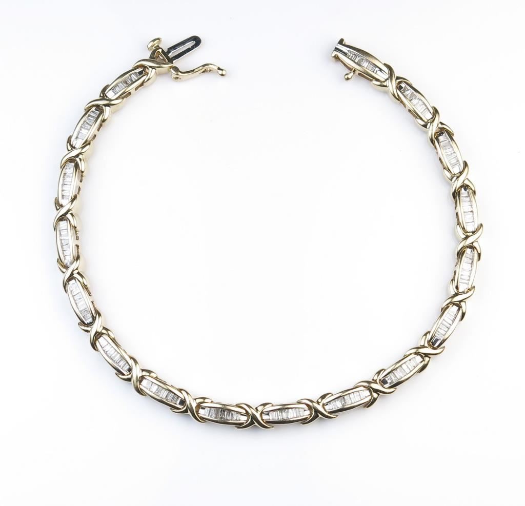 Stunning Diamond Bracelet featuring 119 baguette cut Diamonds weighing approx. 1.20 carats with H-I colors and SI/I clarity set in 10 karat yellow gold setting. Retail $2,000-$3,000 Estimates $1,200-$1,800