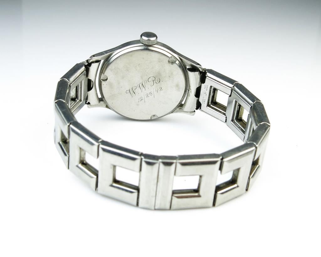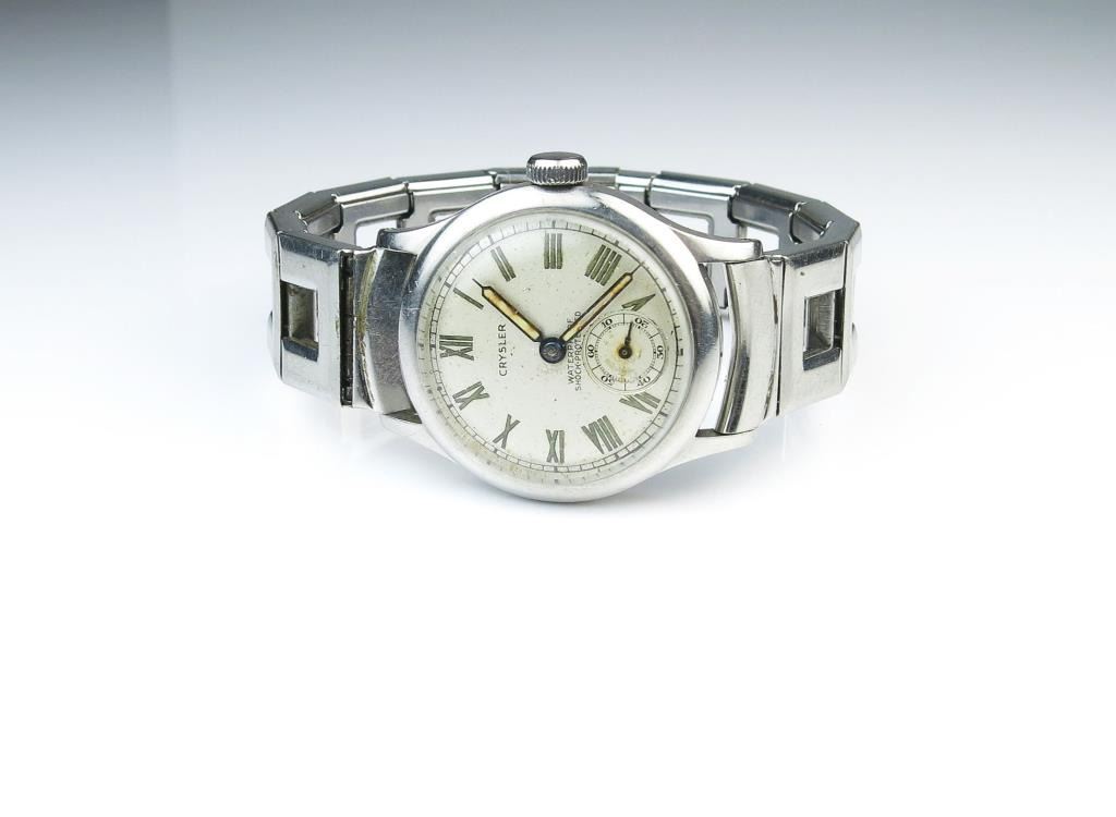 Vintage Crysler Watch round face, self-winding with stainless steel link band stamped year 1942, runs great! Estimates $200-$300