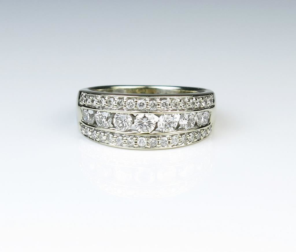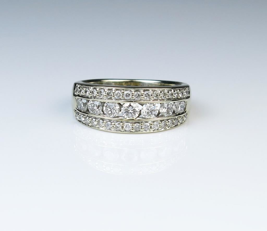 High Quality Diamond Ring featuring 47 round cut Fine Diamonds weighing approx. 1.30 carats with F-G colors and VS clarity set in 14 karat white gold. Retail $3,000-$4,000 Estimates $1,800-$2,500