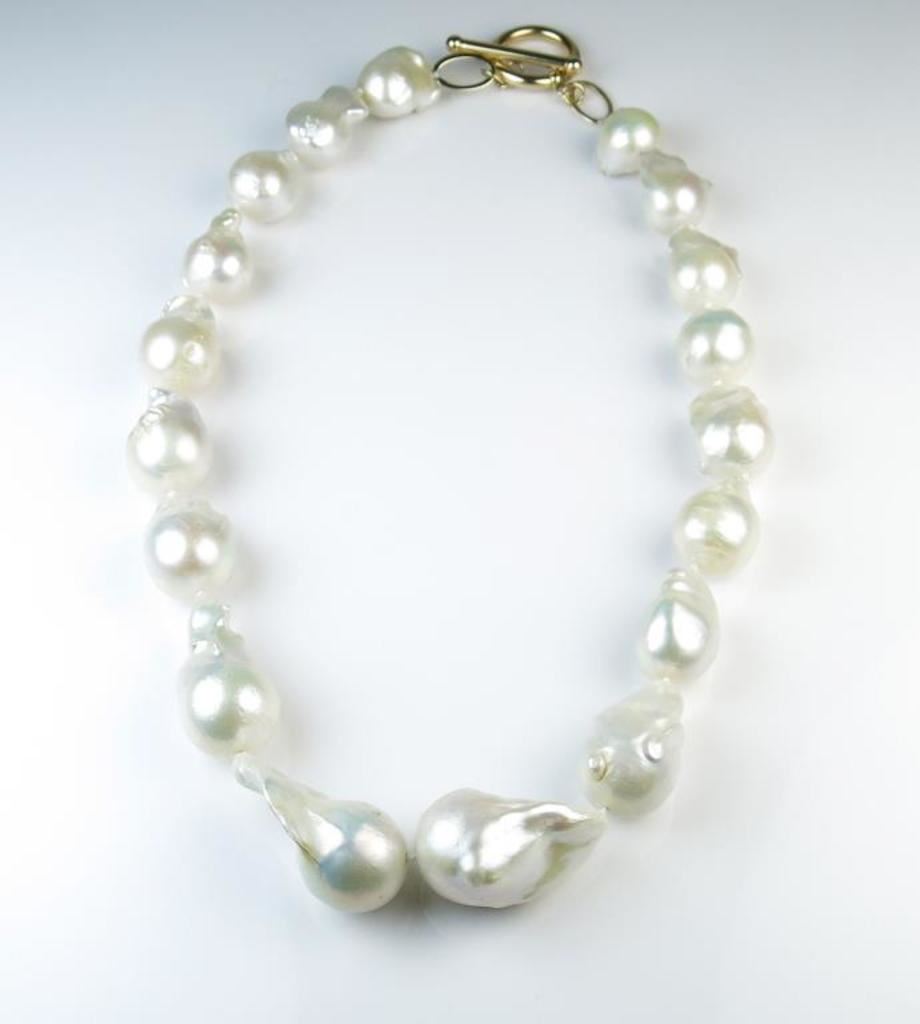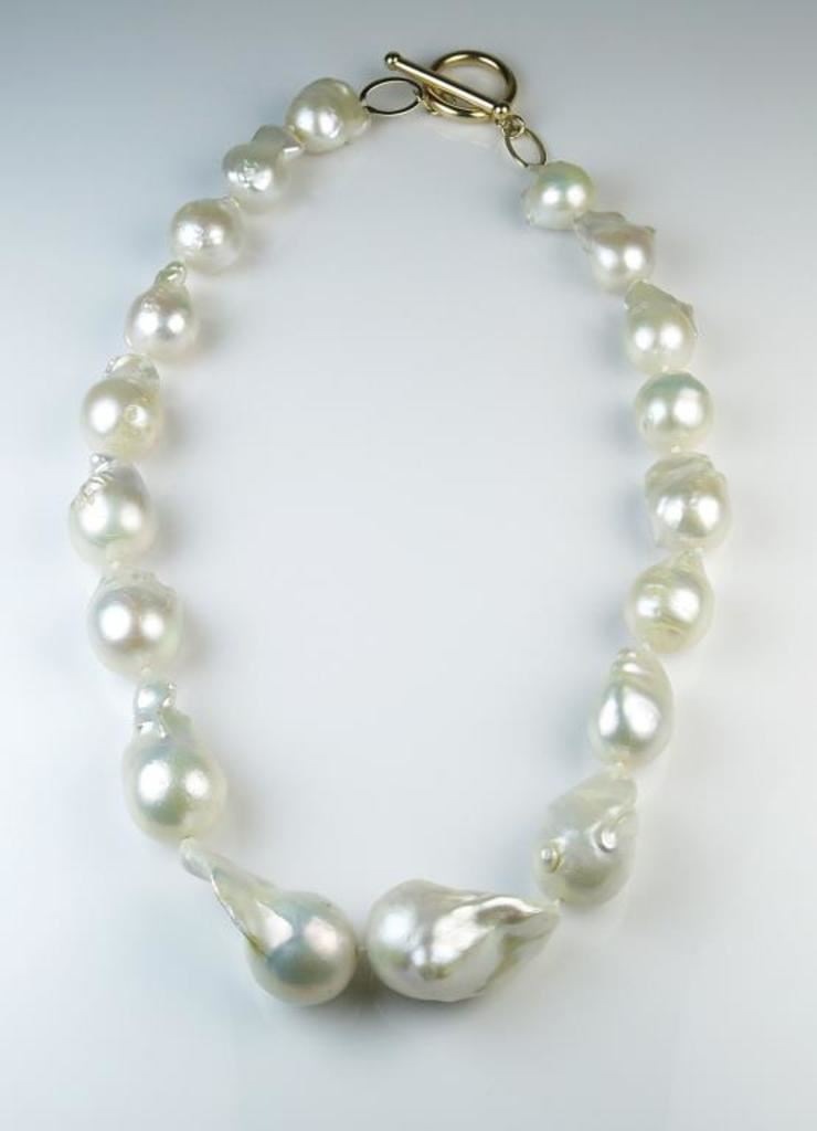 Gorgeous South Sea Blister Pearls with fine color and rich luster with yellow gold tone toggle latch. Estimates $2,000-$3,000