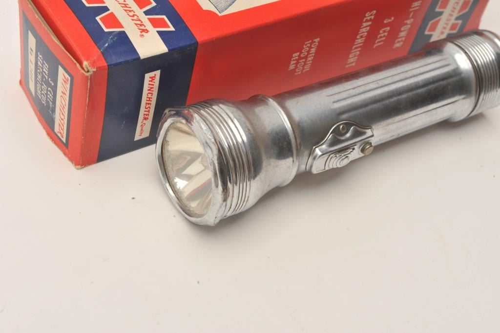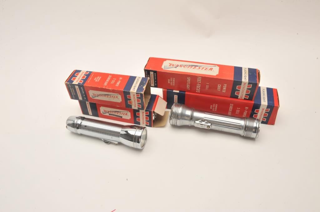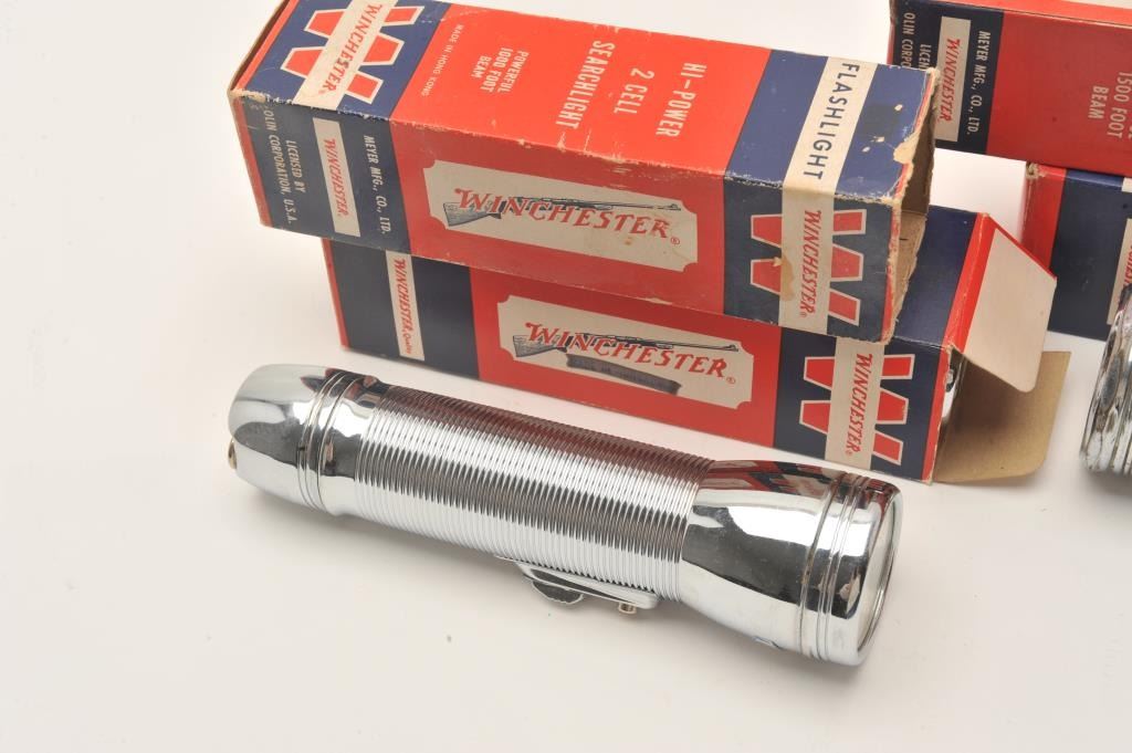 Lot of 5 Winchester flashlights, 4 with factory cardboard boxes. Est.: $300-$600.