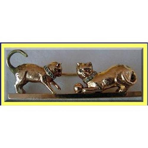 18 carat (hallmarked) gold and diamond brooch / pin with 2 playing cats. Made 19th century,