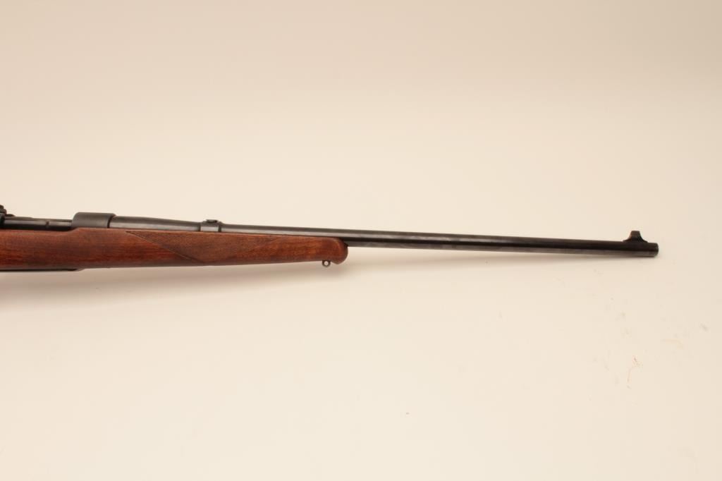 Winchester Model 54 Pre-War .30-06 bolt action sporting rifle with nickel steel barrel, S/N 7702. Very good condition with 80%-90% original blue. Stocks lightly refreshed and the wood was repaired. Redfield receiver sight added. Winchester marked rubber recoil pad. Good bore. (C&R) Est.: $700-$1400