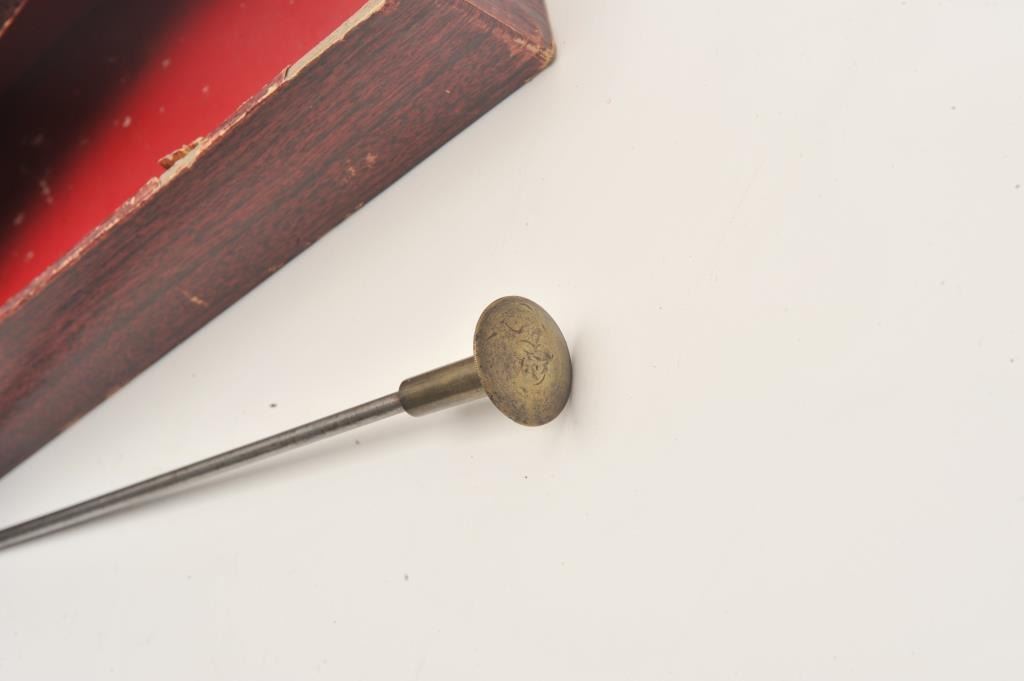 Cardboard box with label reading “New Model Army Revolver” containing original 19th century brass and steel Remington cleaning rod. Also the caliber .44 Remington, 1875 Remington marking and serial 1576 are on the box. Fair to good condition with some tatters and losses. Collection of Doug Drummond. (Antique) Est.: $250-500