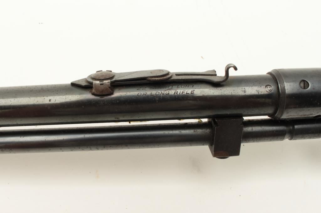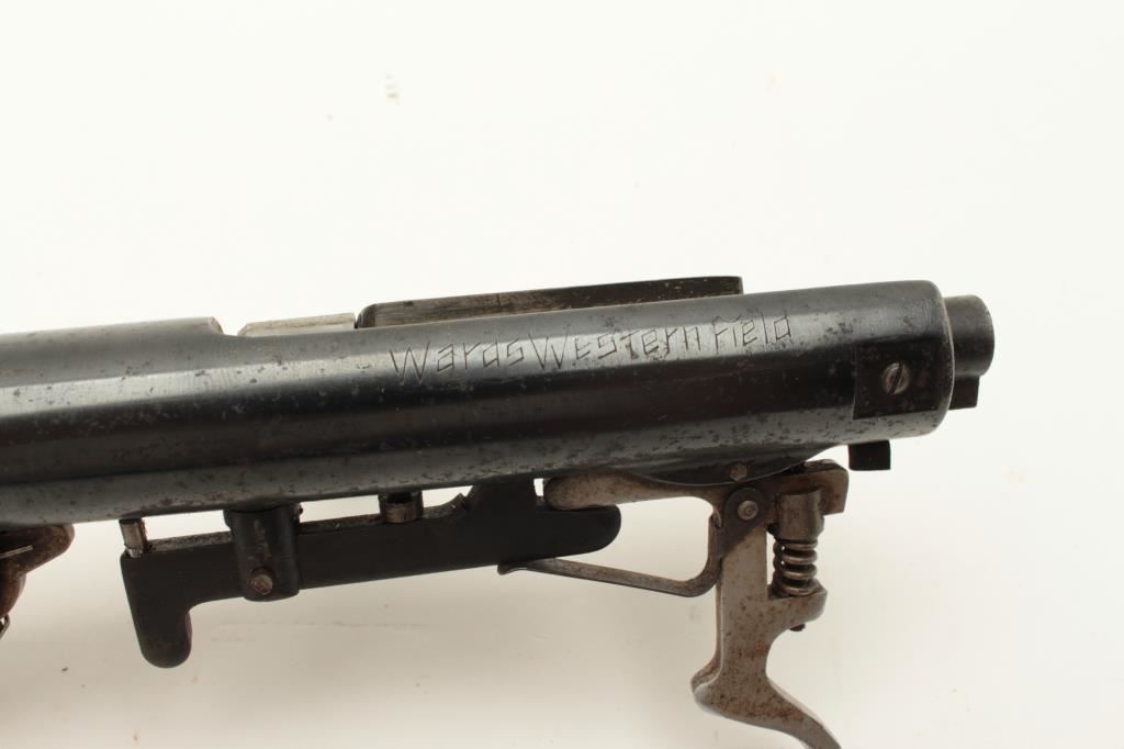 Wards Western Field bolt action barrel, action and loading tube only, .22 short, long or LR caliber, blued finish, 20” barrel, no visible S/N, parts only, action works, bore is overall fair to good. (Modern). Est.: $25-$50.