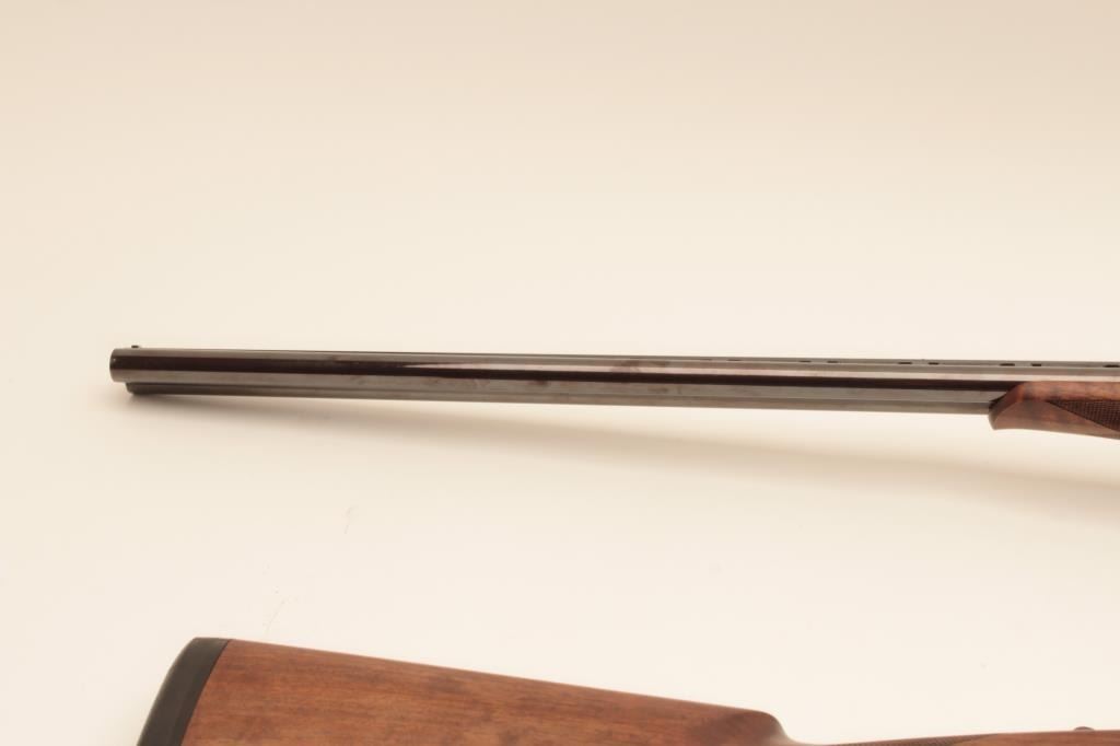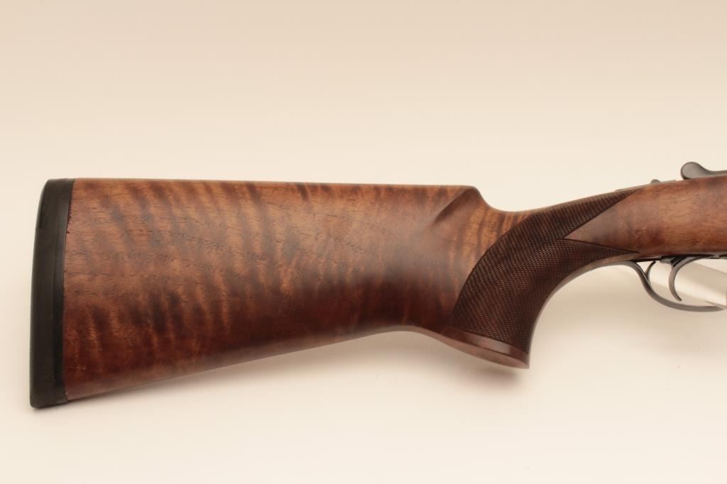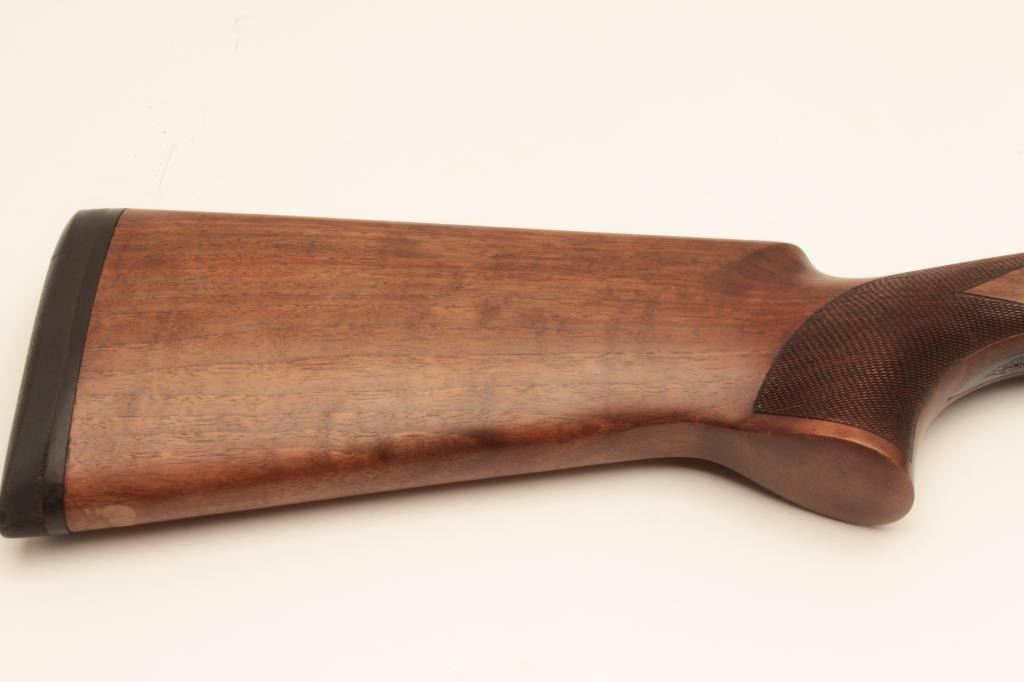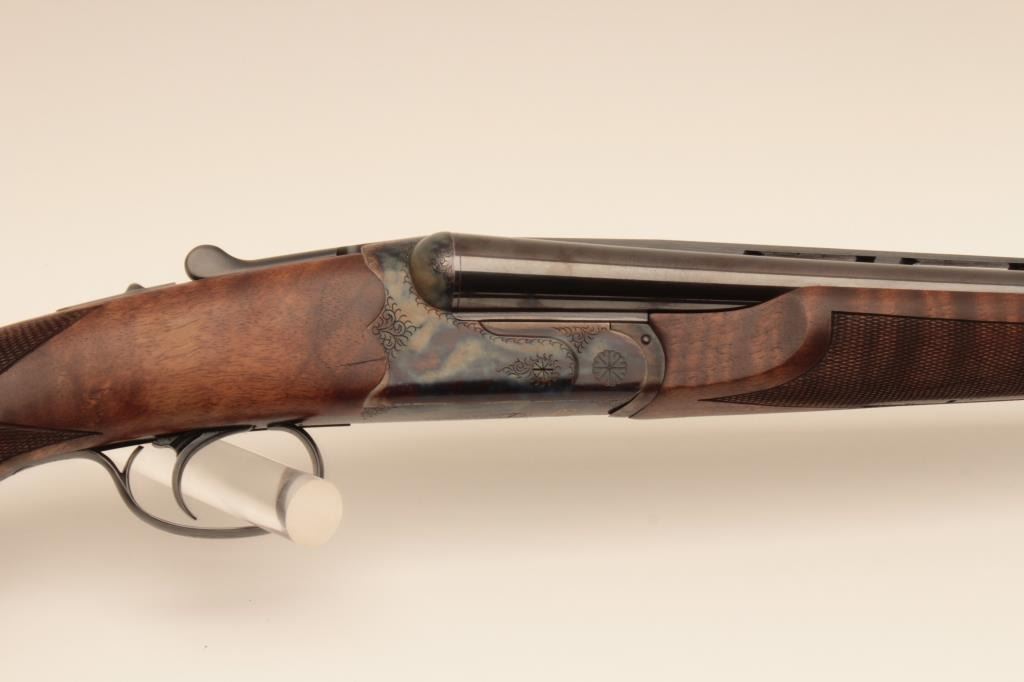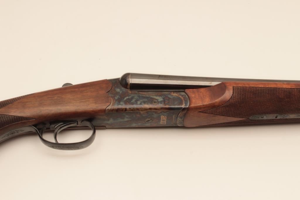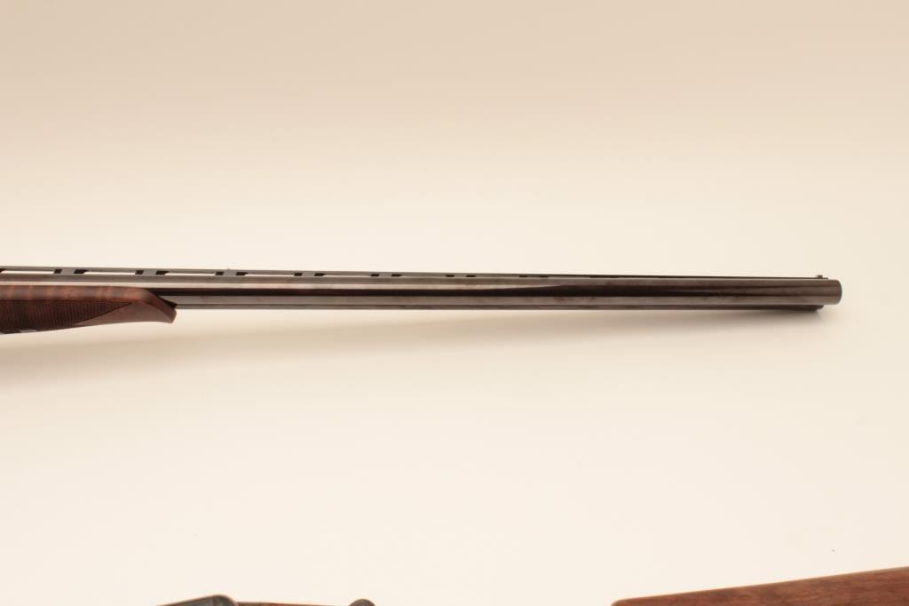 Pair of SKB (Turkey) 20GA SxS shotguns with consecutive numbers in trunk case. The barrels measure 30” with low rise vent rib, single trigger, auto ejectors, and finely stocked in select walnut with swelled andoversize pistol grips. Both have blue and case colored finish. The barrels on gun S/N 315 is choked modified right barrel and full left barrel. The barrels on gun S/N 316 choked full right barrel and modified left.Measures 14 1/8” to the end of the rubber pads. Fine to excellent used condition with 97%-99% original finishes and near fine stock. Minor evidence of use. The best quality we have seen on Turkish made armswith excellent stocking and fine fit and exceptional bluing. (Modern) Est.: $3500-$7000