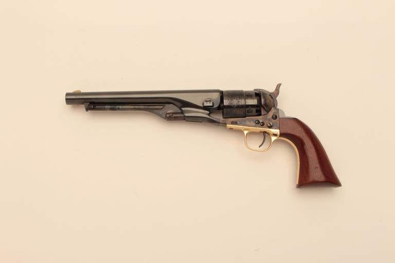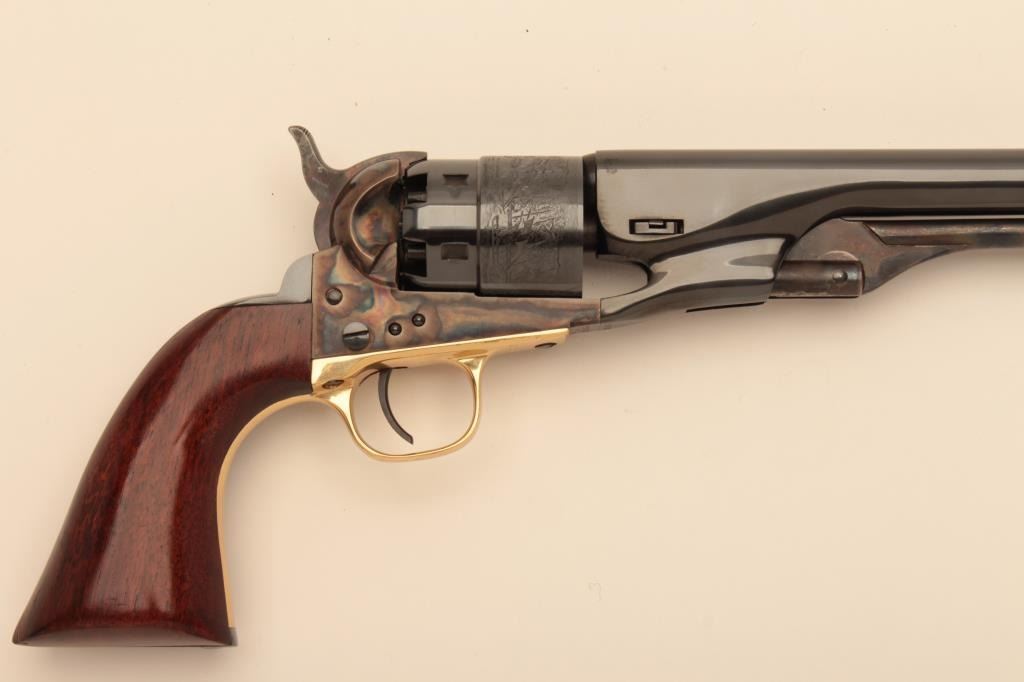 Colt New Black Powder Series 1860 Army revolver in .44 caliber percussion, S/N 215713. Signature Series. 98%-99% overall. Storage marks on grips. Limited to no firing. (Percussion) Est.: $250-$500