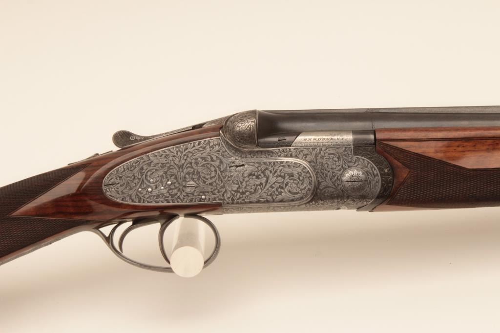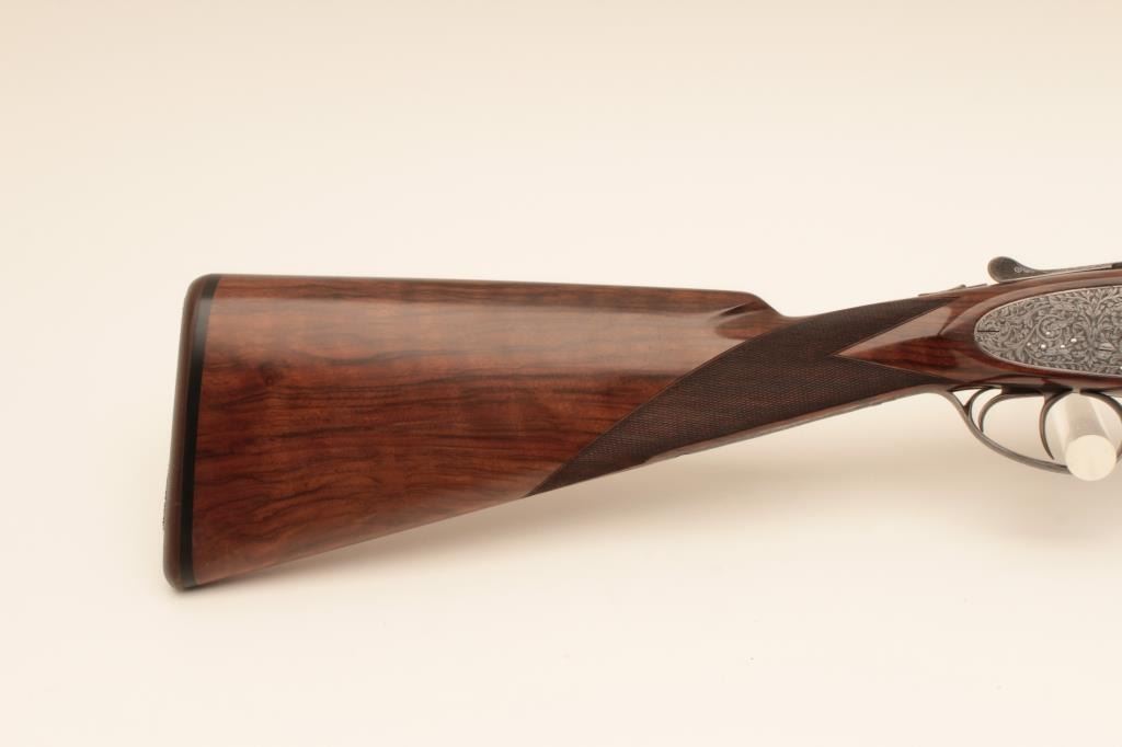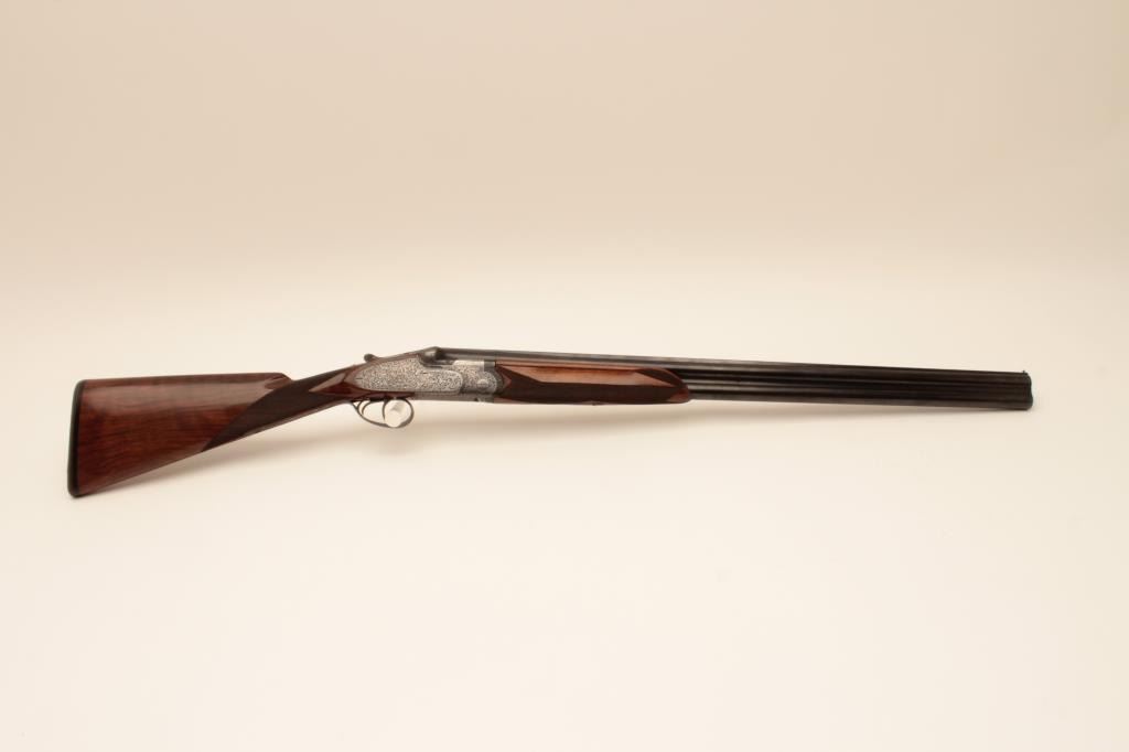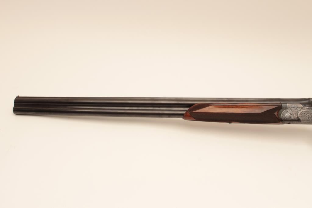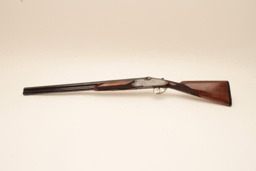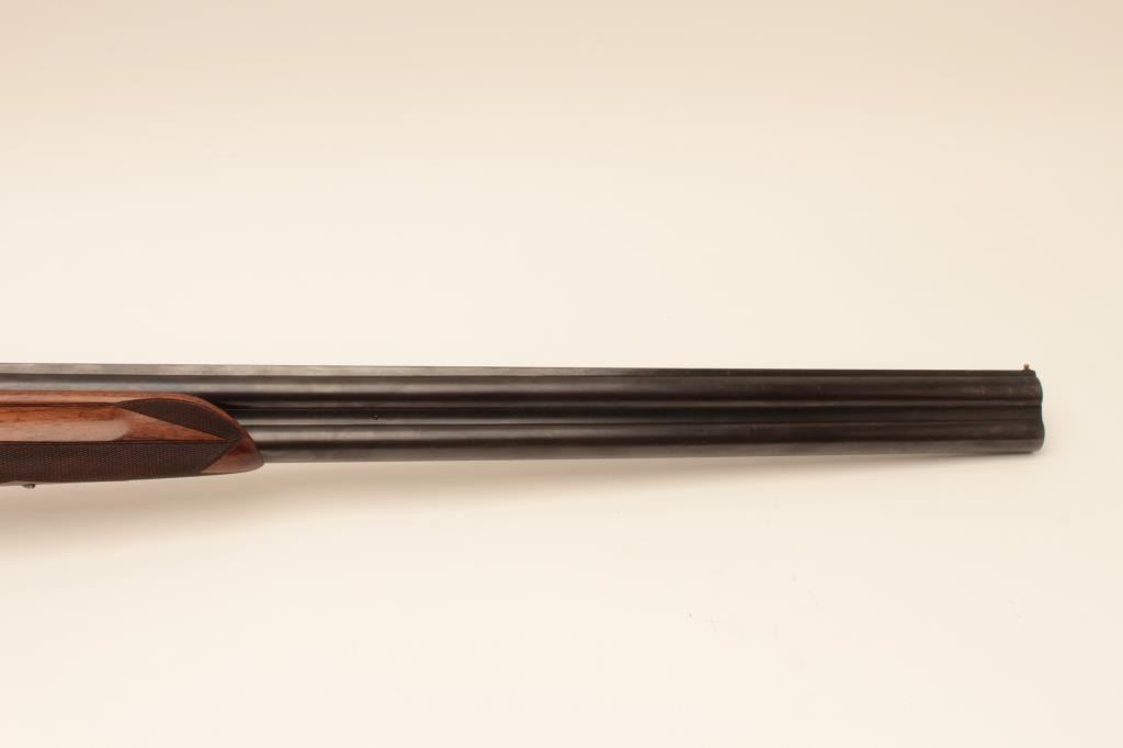 Beretta S3 12GA Over/Under shotgun with 27 ½” barrels, straight stock, double triggers, raised non-vent rib choked modified over improved and auto ejectors. Profusely scroll engraved and signed “A. Baglioni”. Measures14 ¼” to the end of thin pad. Very good plus used condition overall with 90%-95% original finishes. Minor imperfections only. 95% plus bright blue on trigger guard. In canvas covered luggage case. A beautiful and olderBeretta. (Modern) Est.: $4000-$8000