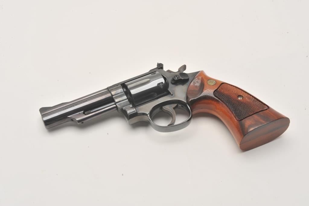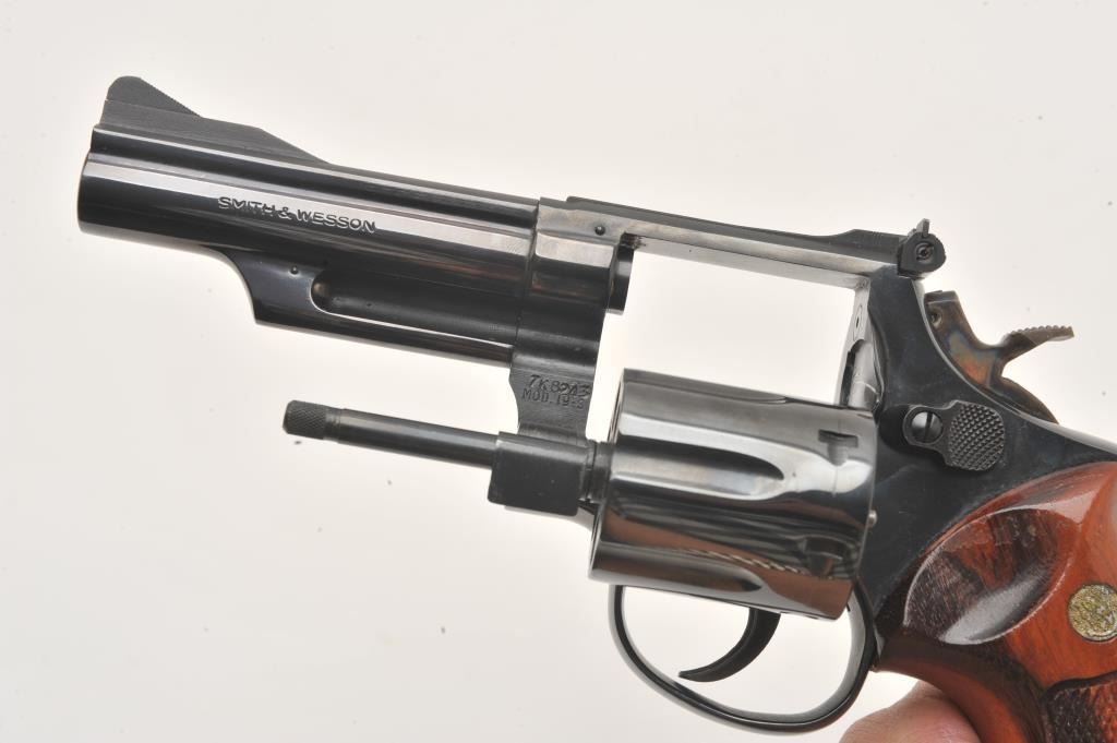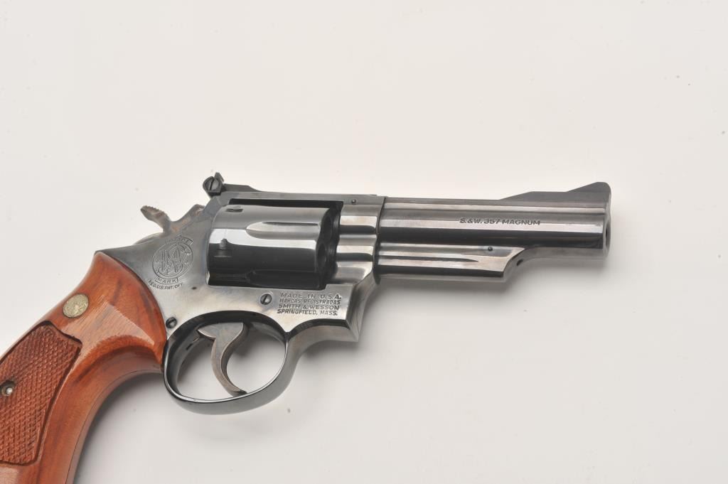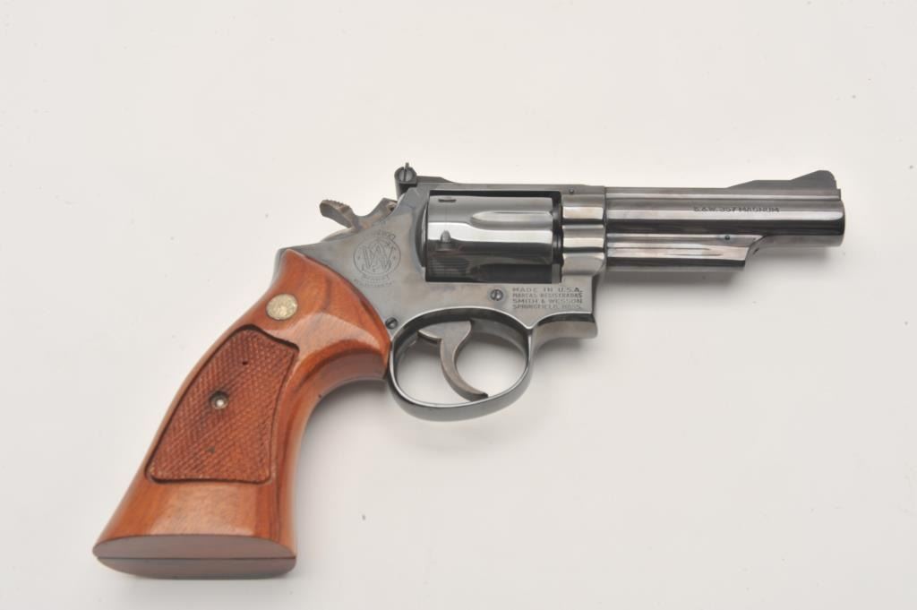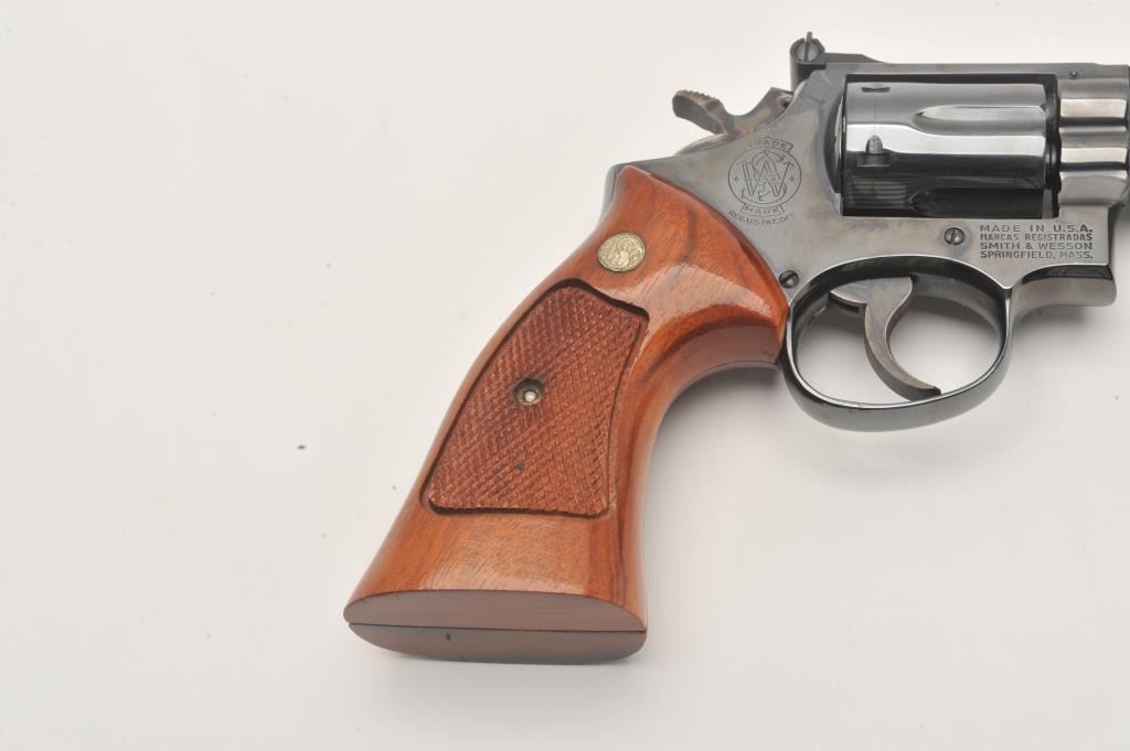 Smith & Wesson Model 19-3 Double Action revolver in .357 Mag with a 4” barrel and target features, S/N 7K8243. Fine to excellent used condition. 98%-99% minor firing and use. Pinned barrel. (Modern/PPT) Lot Title Est.: $400-$800