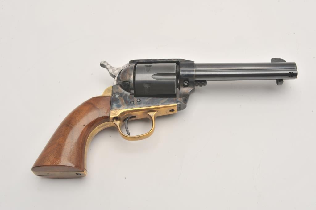 Dakota Arms 1873 model SA, #84935, .32-20 cal., 4 3/4" barrel, blue and color case hardened finish, jeweled hammer, with brass backstrap and wood grips. Revolver is in excellent condition. (Modern / PPT) Est.$300-600