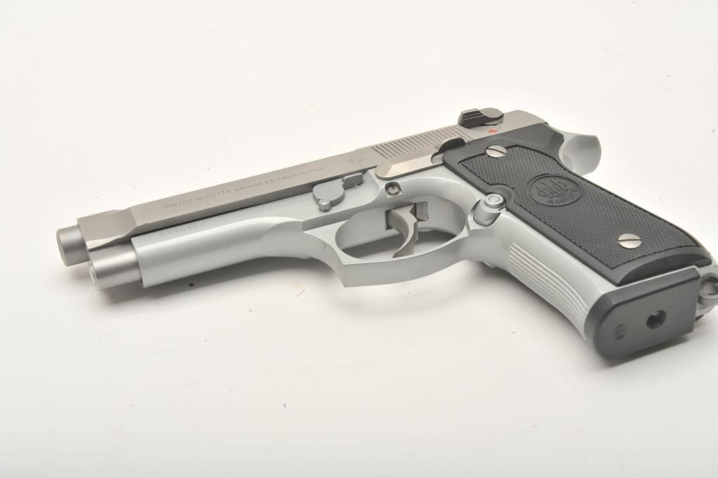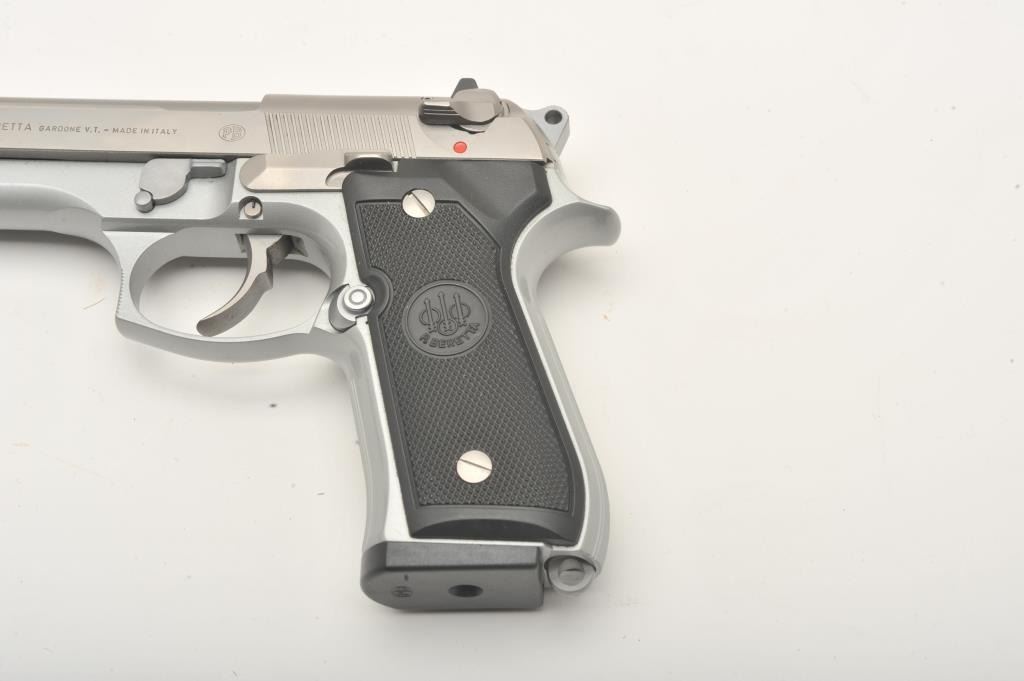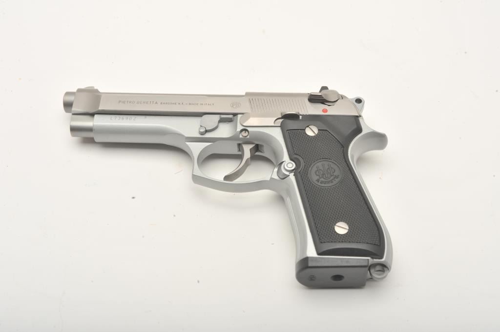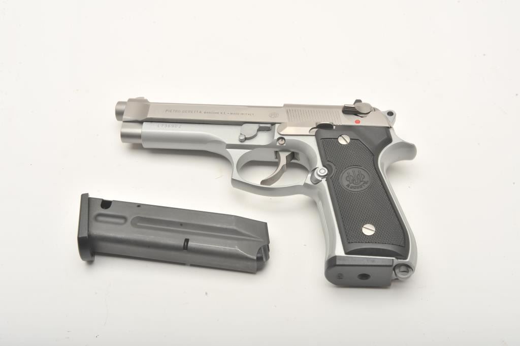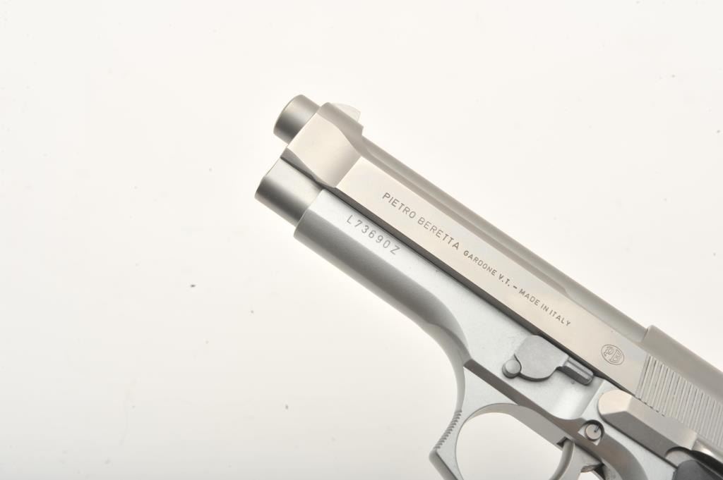 Beretta Model 92FS semi-automatic pistol, 9mm parabellum caliber, one extra magazine, stainless, checkered black grips, factory hard carry case, instructions, S/N L73690Z, in overall fine condition displaying minimaluse. (Modern/PPT). Est.: $400-$800.