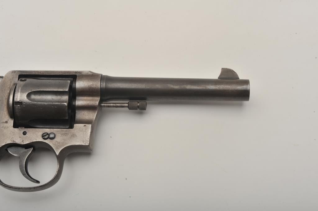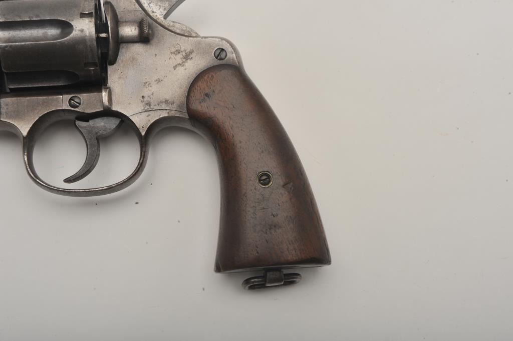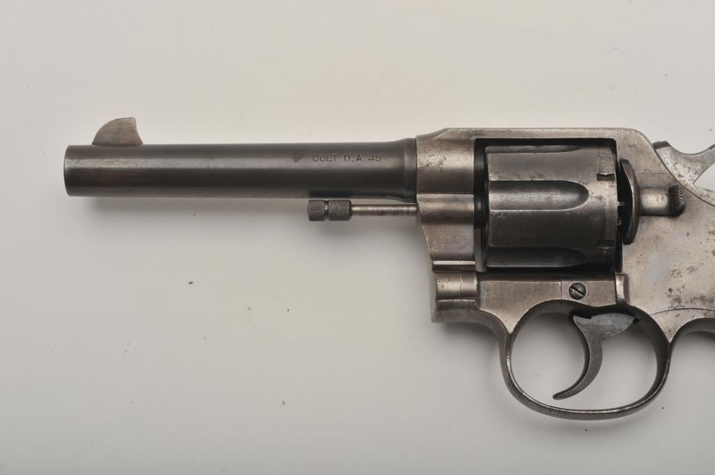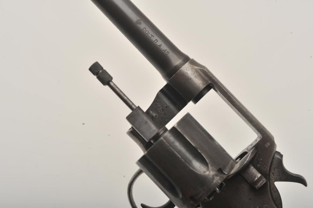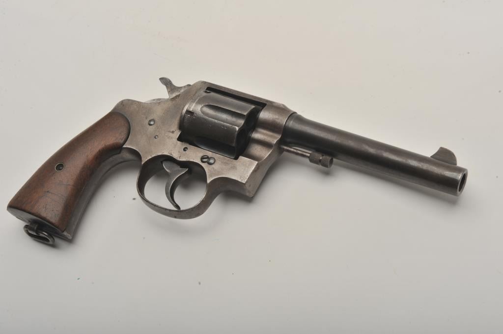 Colt U.S. Property marked Model 1917 DA revolver, .45 caliber, 5.5” barrel, blued finish, wood grips, lanyard ring, S/N 239592 (U.S. Army #87888 on butt strap); overall good + condition with traces of original blue in protected areas, good action, good markings, good to very good bore and grips. (C&R). Est.: $350-$700.