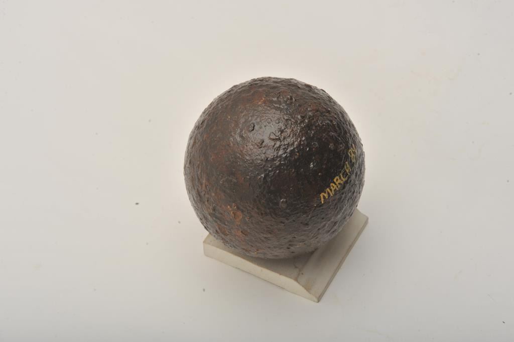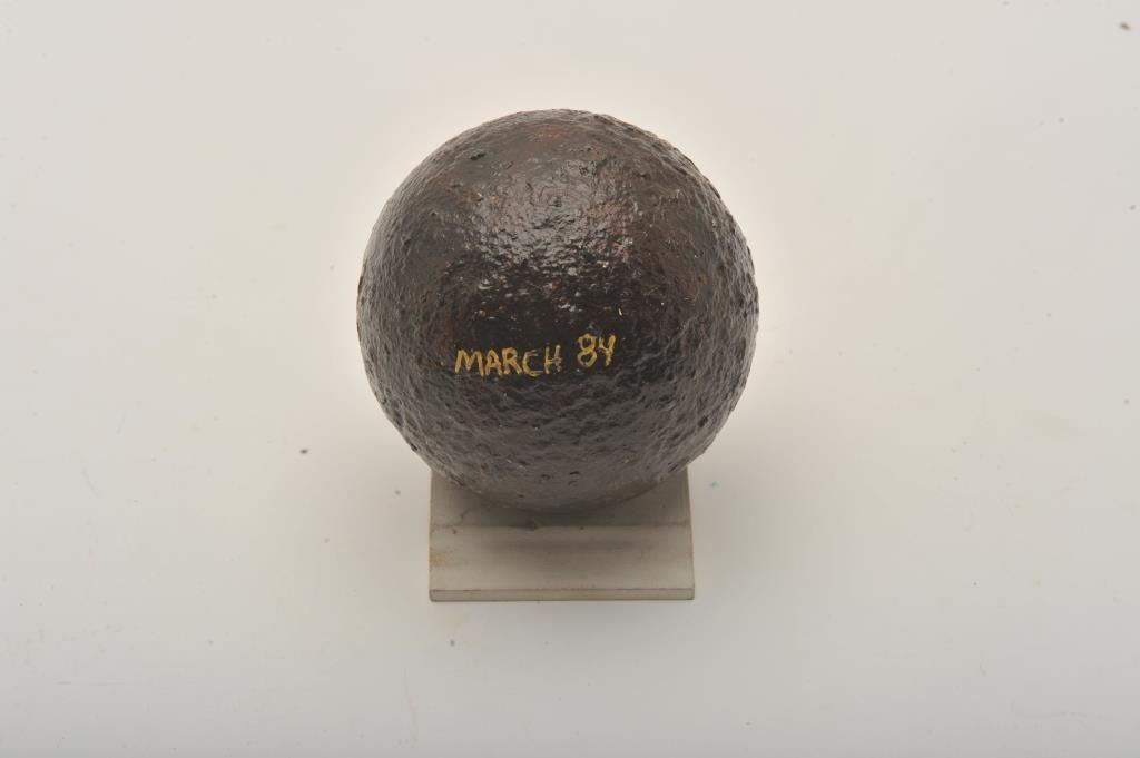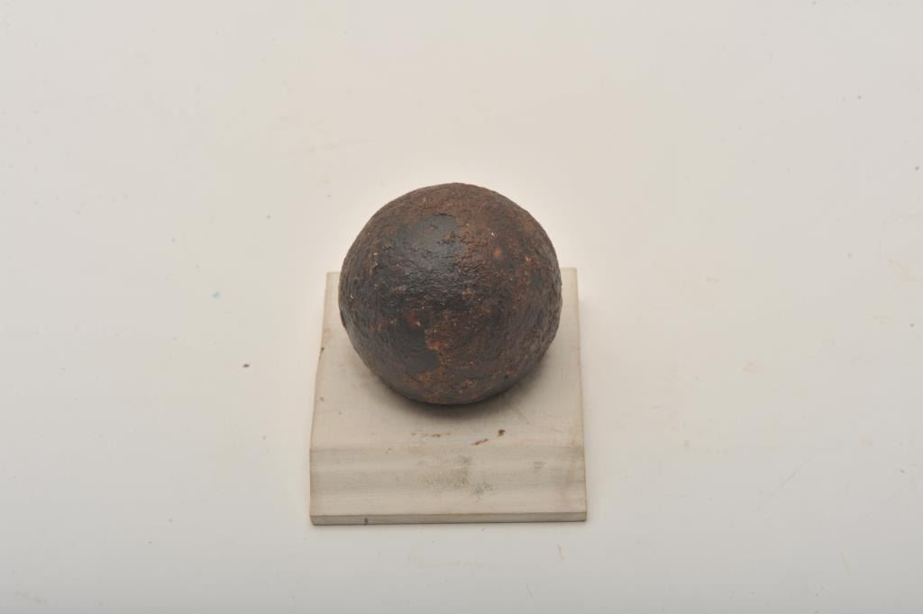 Lot of 2 iron projectiles including a cannon ball, approximately 4.5” in diameter and a shot ball, approximately 2.5” in diameter; reportedly from a Stone Mountain dig of ’84 per consignor. Est.: $100-$200.