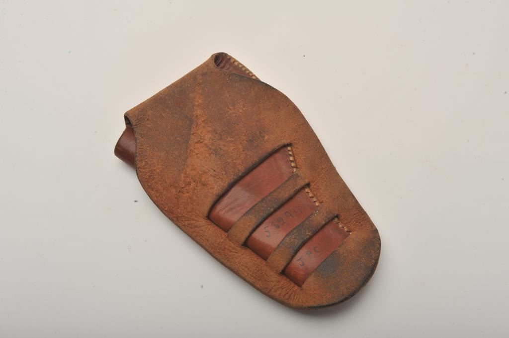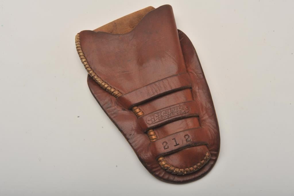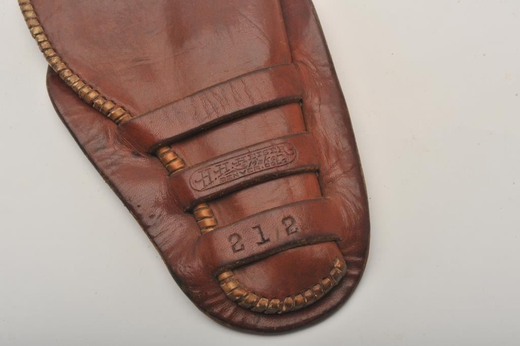 Triple loop H. H. Heiser/Maker/Denver, Colo.” marked leather holster in good to very good overall condition; appears to be for a 4” or 5” barreled revolver. Est.: $200-$400.