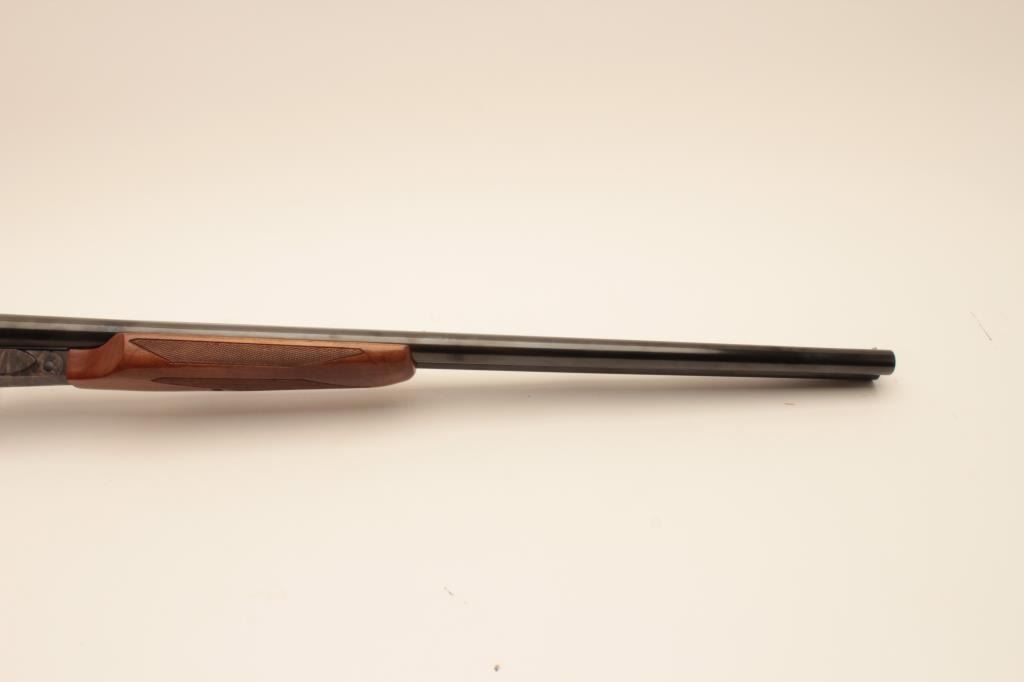 Fox Model BSE Series H SxS shotgun, #E088782, 12 Ga, 28" vent rib barrels with ejectors, single trigger, blued barrels with case hardened frame, checkered stock with 15 1/4" LOP. Shotgun is in fine condition overall,showing only minimal handiling marks. Choked Improved, both barrels. (Modern) Est $300-600