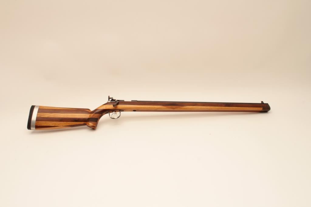 Winchester Model 47 single shot bolt action, #NSNV, .22 cal, jeweled bolt, Lyman 55 peep sight, custom laminated full length stock with rubber recoil pad. Rifle is in very good condition overall, action is good with light trigger pull, bore is very good, retains almost all it's original finish except a small area where the rear sight was removed. (C& R) Est. 300-600