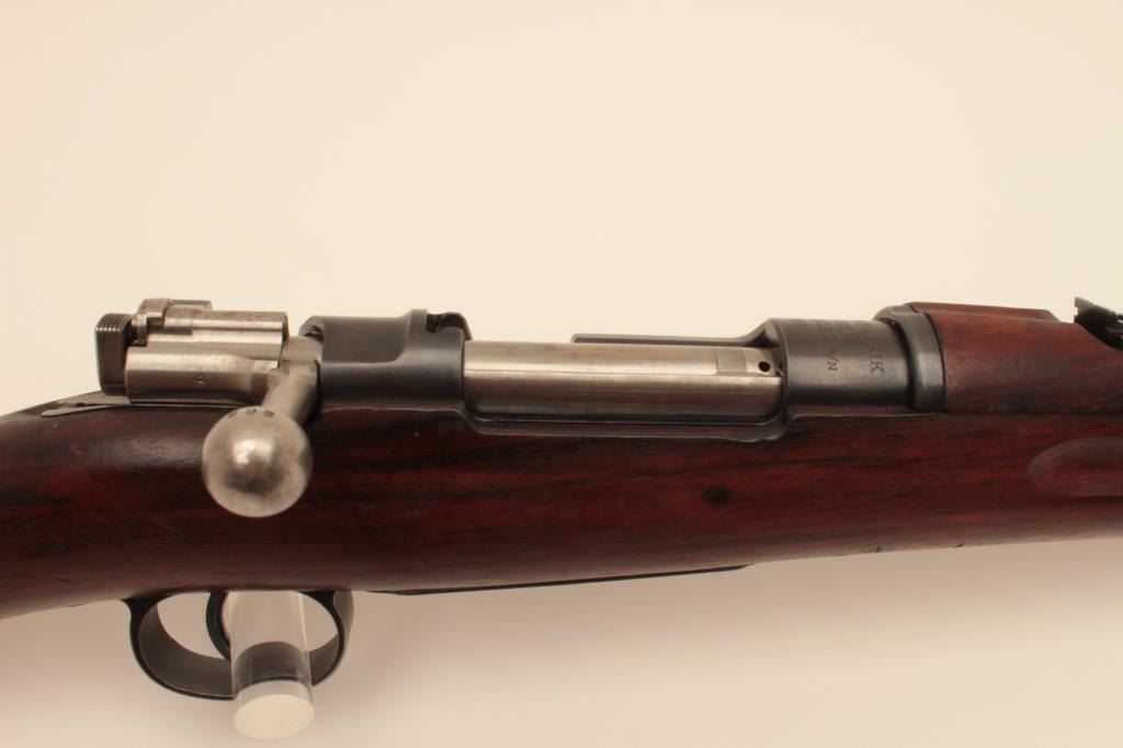 Model 1896 Swedish Mauser bolt action rifle, 6.5 x 55mm caliber, 27” barrel, blued finish, wood stock, import marked, S/N 31368, visible numbers match; overall very good to near fine condition with very good + bore,crisp action, sharp markings and overall very good wood stock. (C&R). Est.: $150-$300.