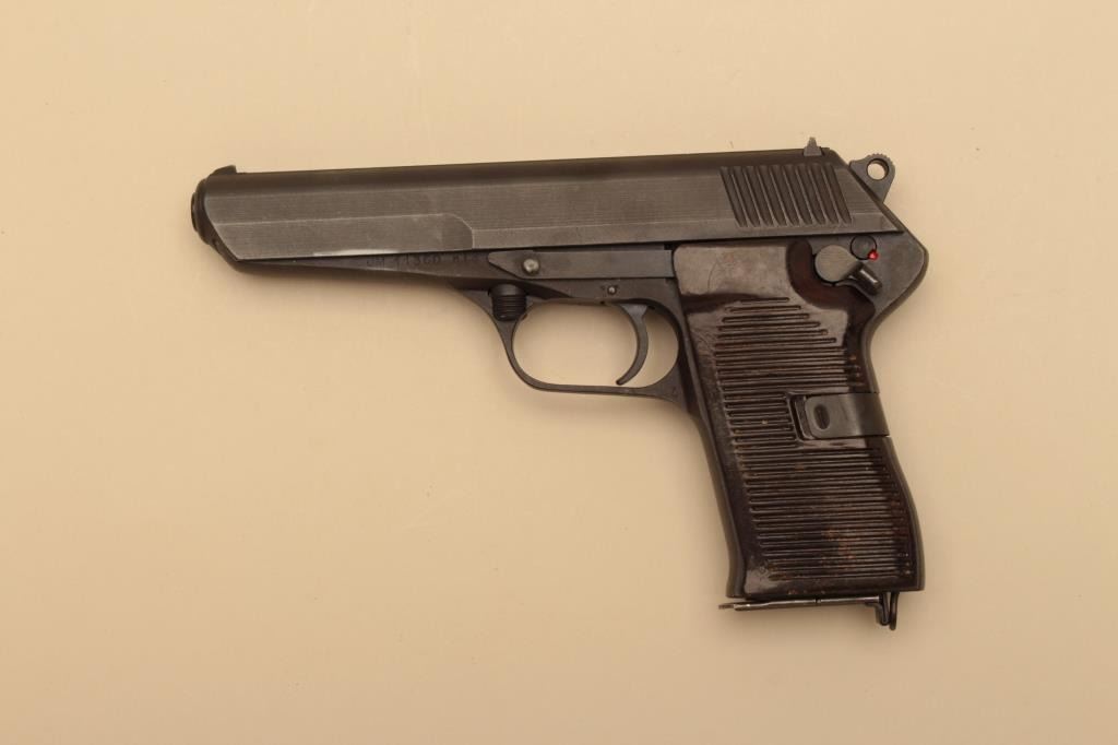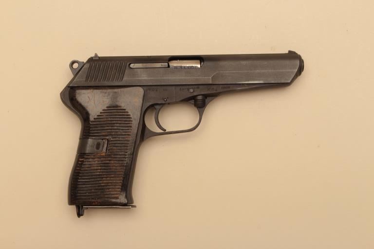 CZ Model 52 semi automatic pistol, #JM11360, 9mm cal., 4.7" barrel, parkerized finish, bakelite grips. Pistol is in fine condition overall, retaining the majority of it's military finish. Bore is good, with somevery light pitting, action is good. One mag and box included. (C&R/PPT) Est. $250-500